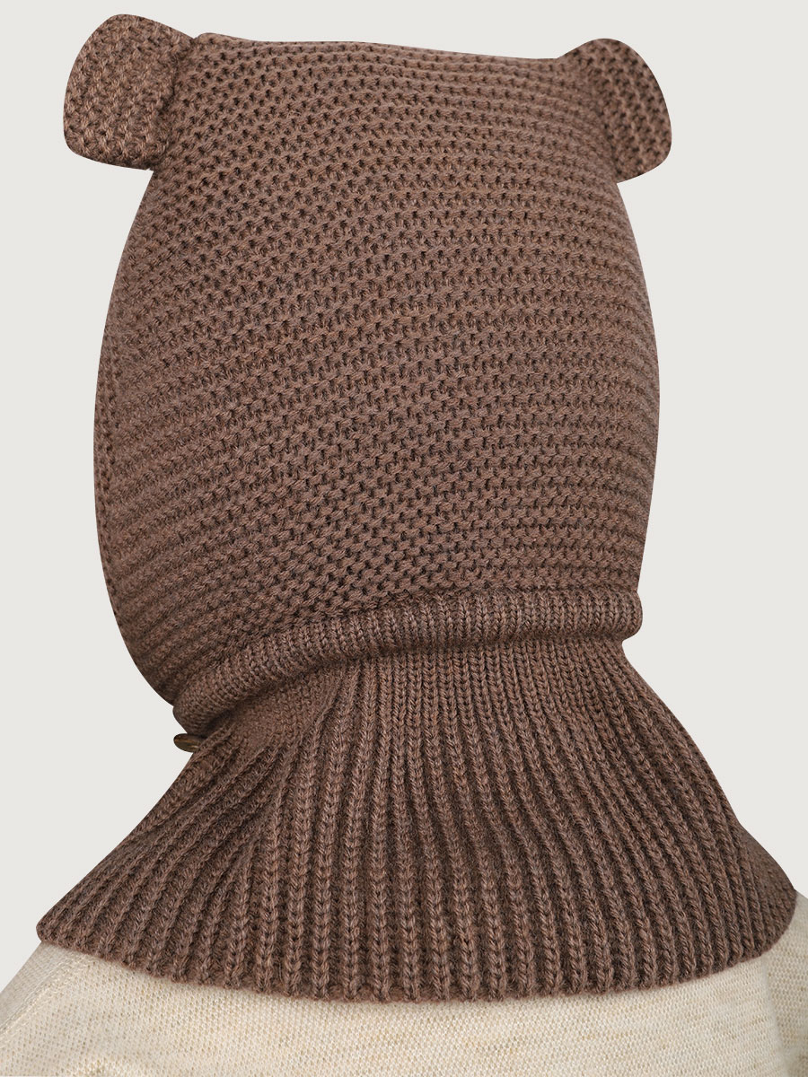 Зимняя полушерстяная балаклава шлем УМКА. Балаклава обладает удобной эргономичной формой, которая надежно и плотно облегает голову крохи, прикрывая ушки, а мягкая резинка вокруг лица не натирает и не жмет. Особенностью представленной модели является манишка, заменяющая шарф, которая регулируется по шее ребенка и застегивается на маленькую пуговку.