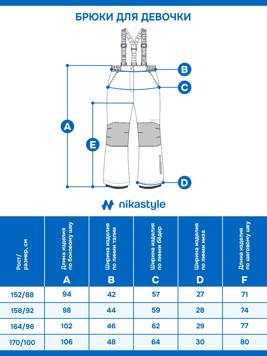 - брюки с регулируемыми бретелями, удобными карманами, флисовой подкладкой до середины бедра,