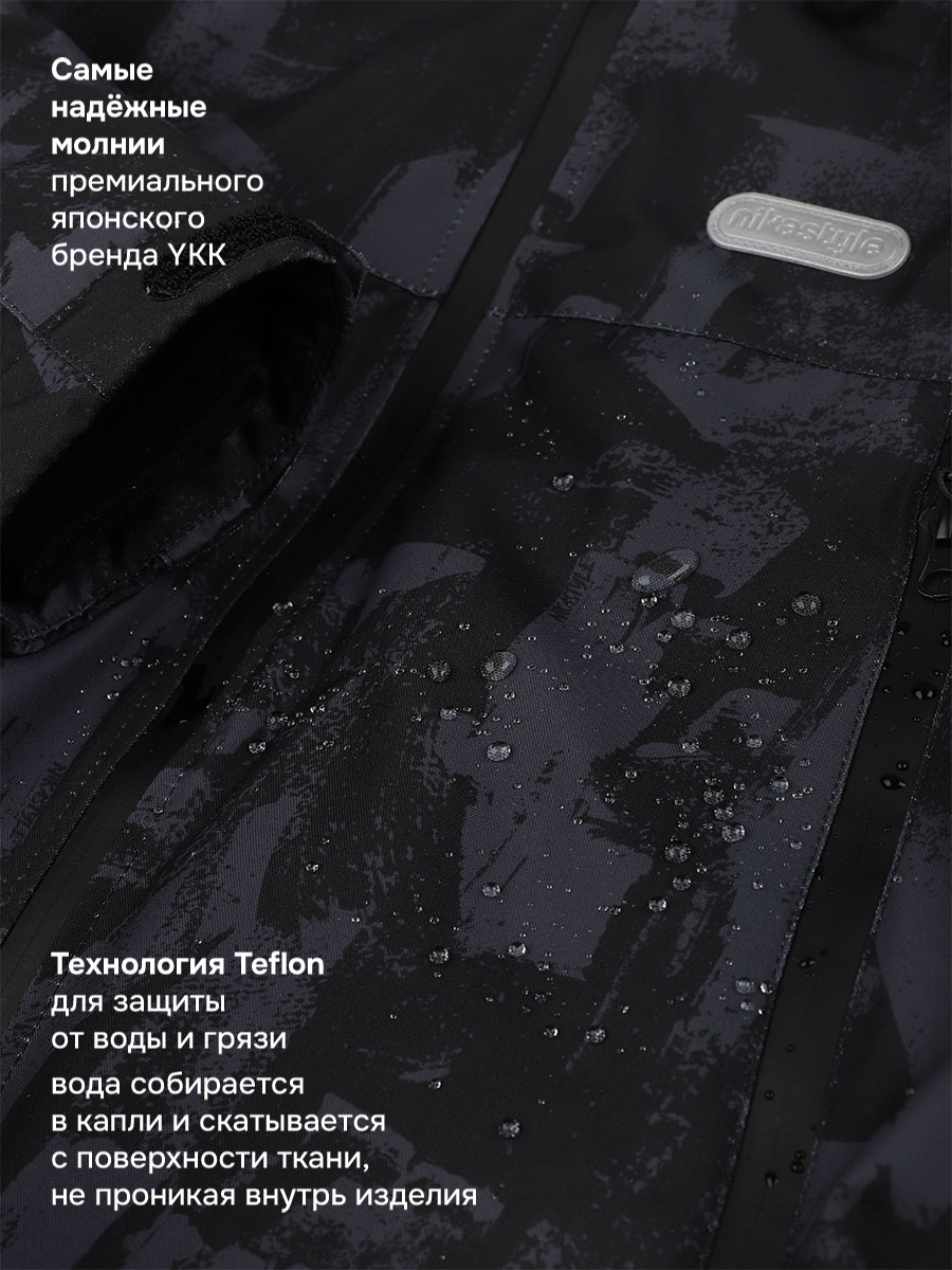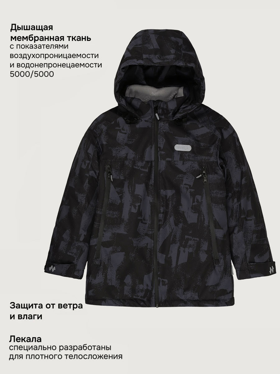 Куртка для мальчиков ГРАФФИТИ специально разработана для полных детей. Куртка из мембранной ткани 5000/5000 с водо- грязеотталкивающей технологией TEFLON. Мембранная ткань - это непродуваемый и водонепроницаемый материал, который надежно защищает от ветра и влаги. Благодаря дышащим свойствам мембраны ребенку будет комфортно в любую погоду, и он не вспотеет. Ткань обработана снаружи экологически чистым протектором TEFLON для защиты от воды и грязи.
