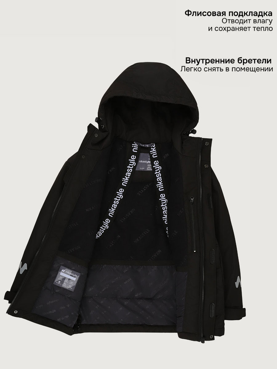 Мы все продумали до мелочей, поэтому модель дополнительно оснащена манжетами на резинке и патами на липах для регулировки по низу рукава, светоотражающими элементами для безопасности ребенка в темное время суток.