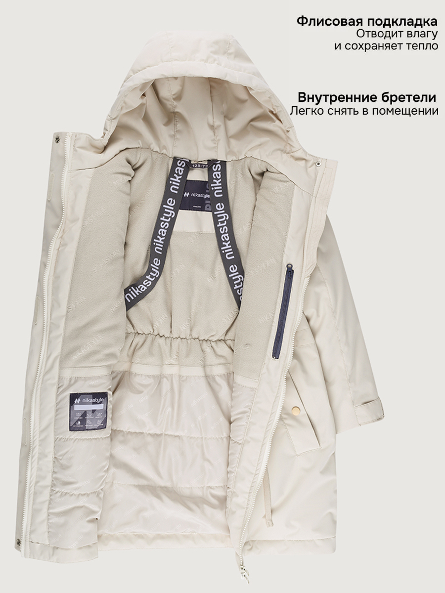 Парка из мембранной ткани 5000/5000. Мембранная ткань - это непродуваемый и водонепроницаемый материал, который надежно защищает от ветра и влаги. Благодаря дышащим свойствам мембраны ребенку будет комфортно в любую погоду и он не вспотеет. Флисовая подкладка отводит влагу и имеет хорошие теплоизоляционные свойства.