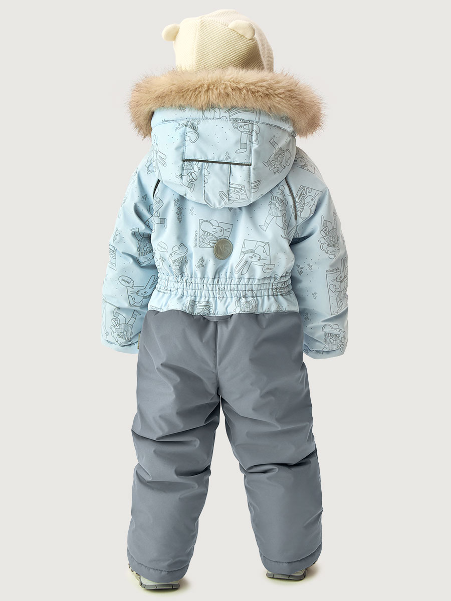Функционал: длинная центральная застежка обеспечивает легкое одевание малыша, карманы на молнии, ветрозащитная планка, съемный капюшон и меховая опушка на молнии, кулиса для регулировки объема по капюшону, резинка на спинке для создания силуэта, внутренние бретели для возможности снять верхнюю часть изделия в помещении.