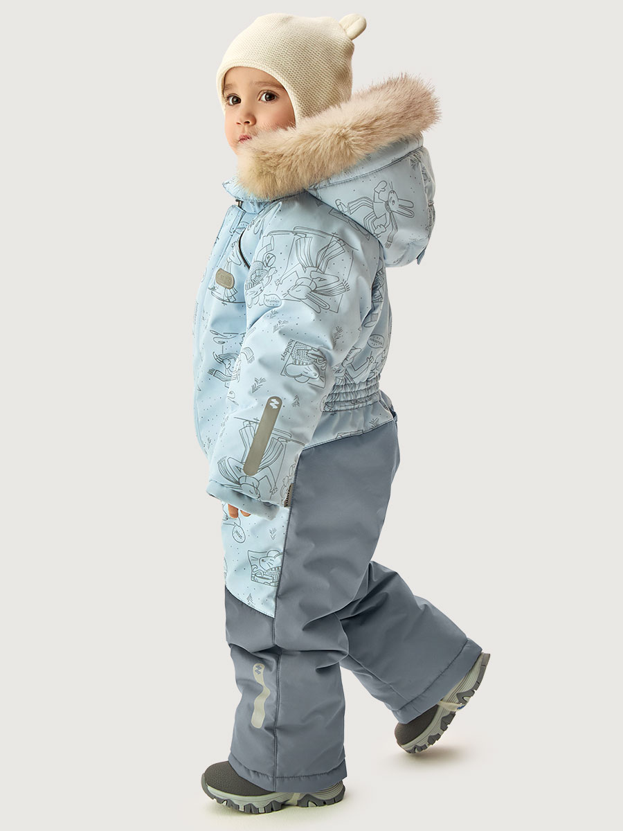 Мы все продумали до мелочей, поэтому модель дополнительно оснащена мягкими трикотажными манжетами в рукавах, снегозащитными муфтами на брючинах, силиконовыми штрипками, светоотражающими элементами для безопасности ребенка в темное время суток.