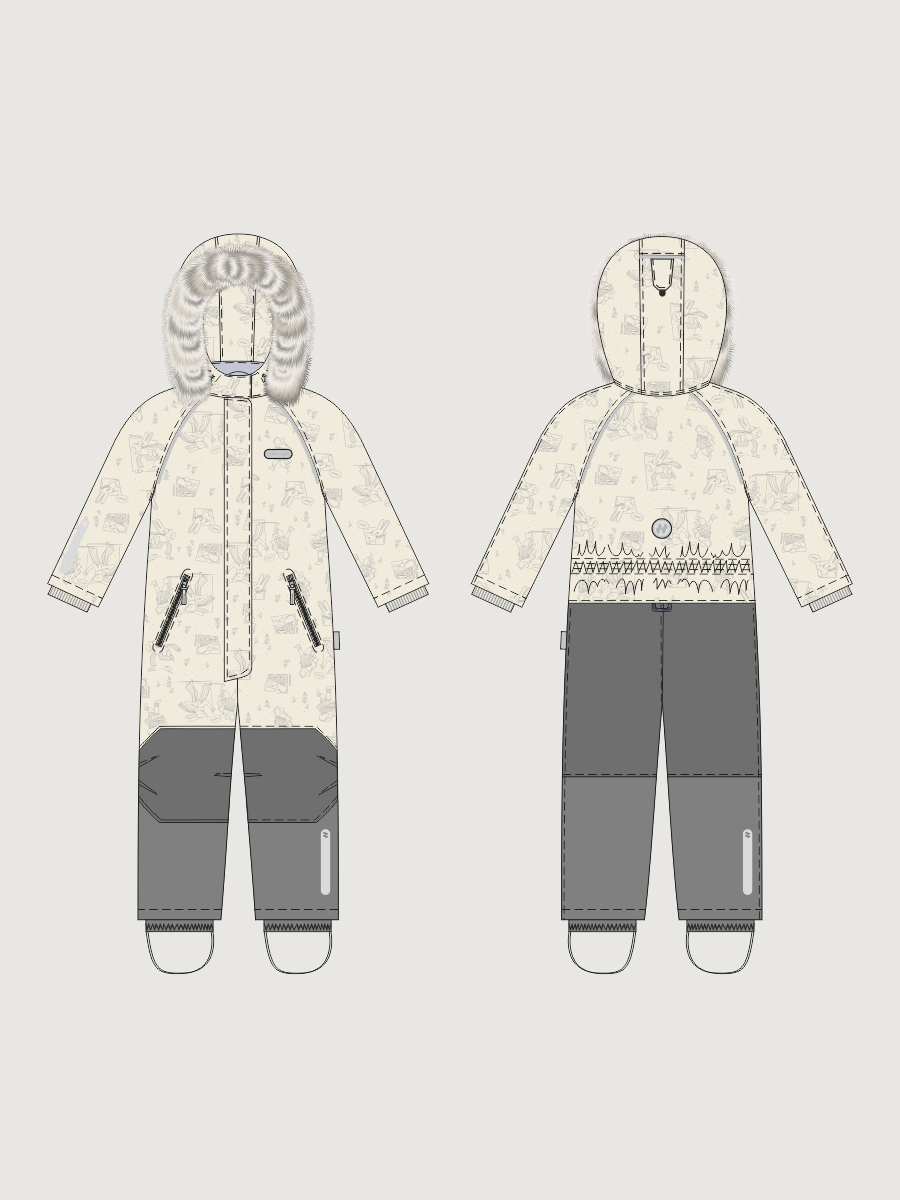Мембранная ткань это непродуваемый и водонепроницаемый материал, который надежно защитит от ветра и влаги. Благодаря дышащим свойствам мембраны ребенку будет комфортно в любую погоду и он не вспотеет. Ткань обработана снаружи экологически чистым протектором TEFLON для защиты от воды и грязи. Дополнительно на ткань нанесен светоотражающий принт
