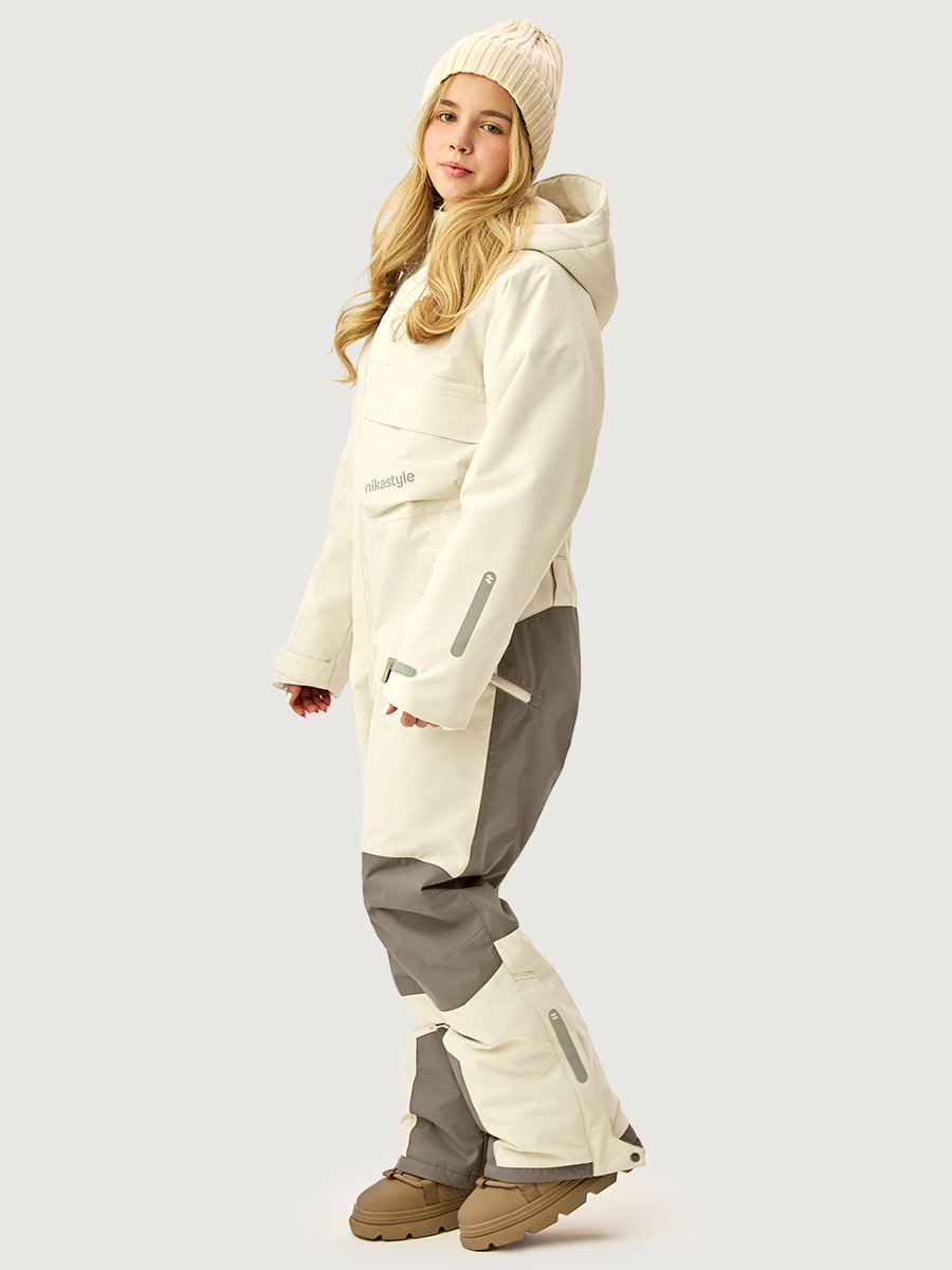 Каждая деталь продумана, чтобы обеспечить комфорт: смещенная центральная застежка с водонепроницаемой молнией, ветрозащитная планка, карманы на молнии и накладной карман с клапаном на липучках, внутренний карман на молнии, капюшон с кулисой для регулировки объема, карман на рукаве под ски-пасс, регулировка ширины по низу рукава, внутренние бретели для возможности снять верхнюю часть изделия в помещении. Мы все продумали до мелочей, поэтому модель дополнительно оснащена трикотажными манжетами с прорезью под палец, область колен и шов сидения проклеены, места повышенного трения выполнены из усиленной ткани, снегозащитные муфты на брючинах, регулировка объема брюк под обувь на молнии, светоотражающие элементы для безопасности ребенка в темное время суток.