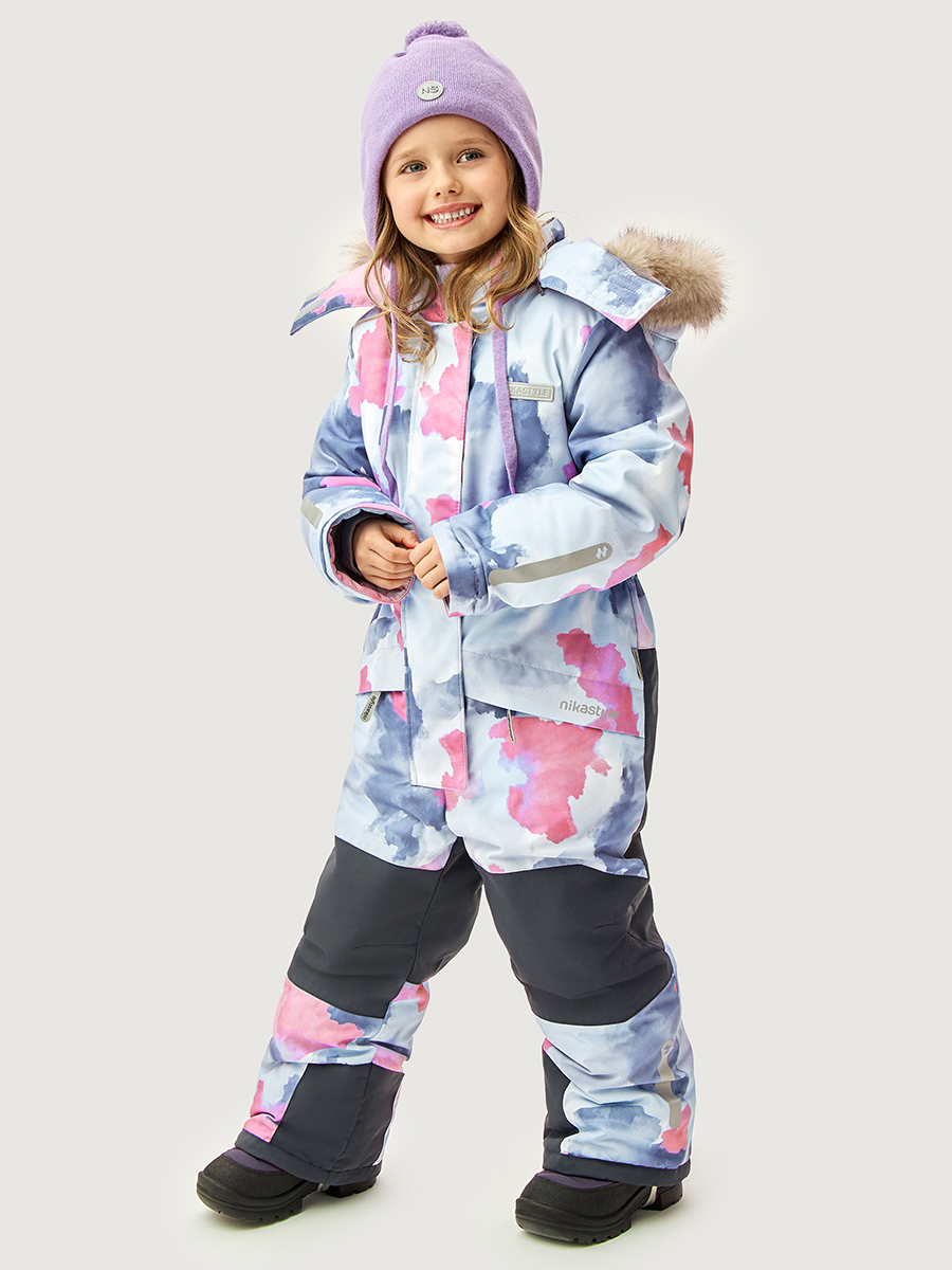 Мы все продумали до мелочей, поэтому модель дополнительно оснащена трикотажными манжетами в рукавах, снегозащитными муфтами на брючинах, силиконовыми штрипками, область колен и шов сидения проклеены, места повышенного трения выполнены из усиленной ткани, флисовая подкладка до середины бедра, светоотражающие элементы для безопасности ребенка в темное время суток.