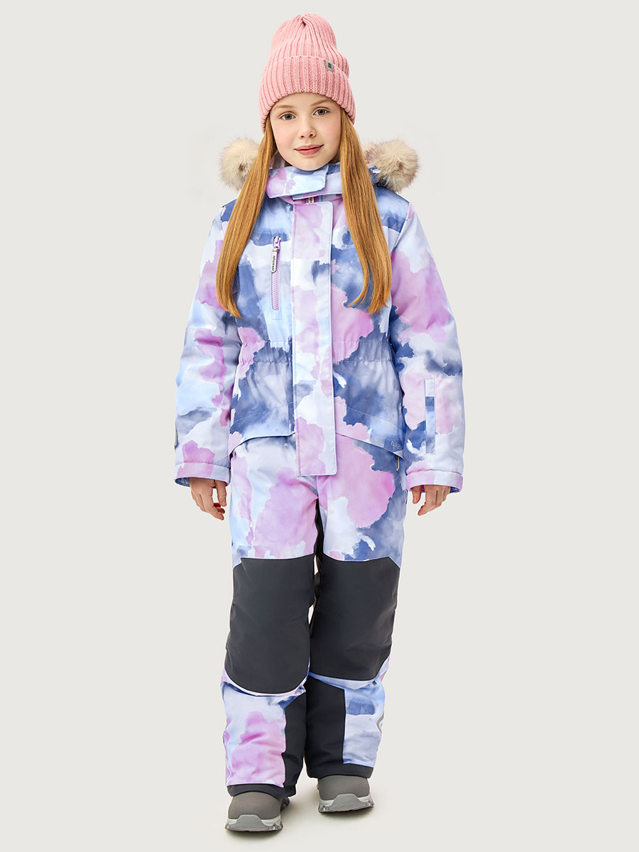 Комбинезон АКВАРЕЛЬ из мембранной ткани 5000/5000 с водо-грязеотталкивающей технологией TEFLON. Мембранная ткань это не продуваемый и водонепроницаемый материал, который надежно защищает от ветра и влаги. Благодаря дышащим свойствам мембраны ребенку будет комфортно в любую погоду, и он не вспотеет. Ткань обработана снаружи экологически чистым протектором TEFLON для защиты от воды и грязи. Мембрана в сочетании с утеплителем нового поколения FIBERlite сохраняет тепло во время прогулок, позволяя телу дышать. Флисовая подкладка отводит влагу и имеет хорошие теплоизоляционные свойства.