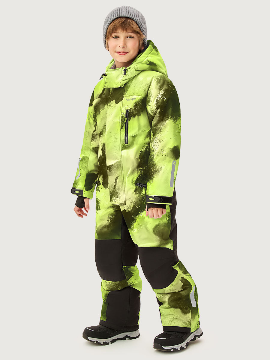 Мы все продумали до мелочей, поэтому модель дополнительно оснащена мягкими трикотажными манжетами с прорезью под палец, флисовая подкладка до середины бедра, область колен и шов сидения проклеены, места повышенного трения выполнены из усиленной ткани, снегозащитные муфты на брючинах, регулировка объема брюк под обувь на молнии, светоотражающие элементы для безопасности ребенка в темное время суток.