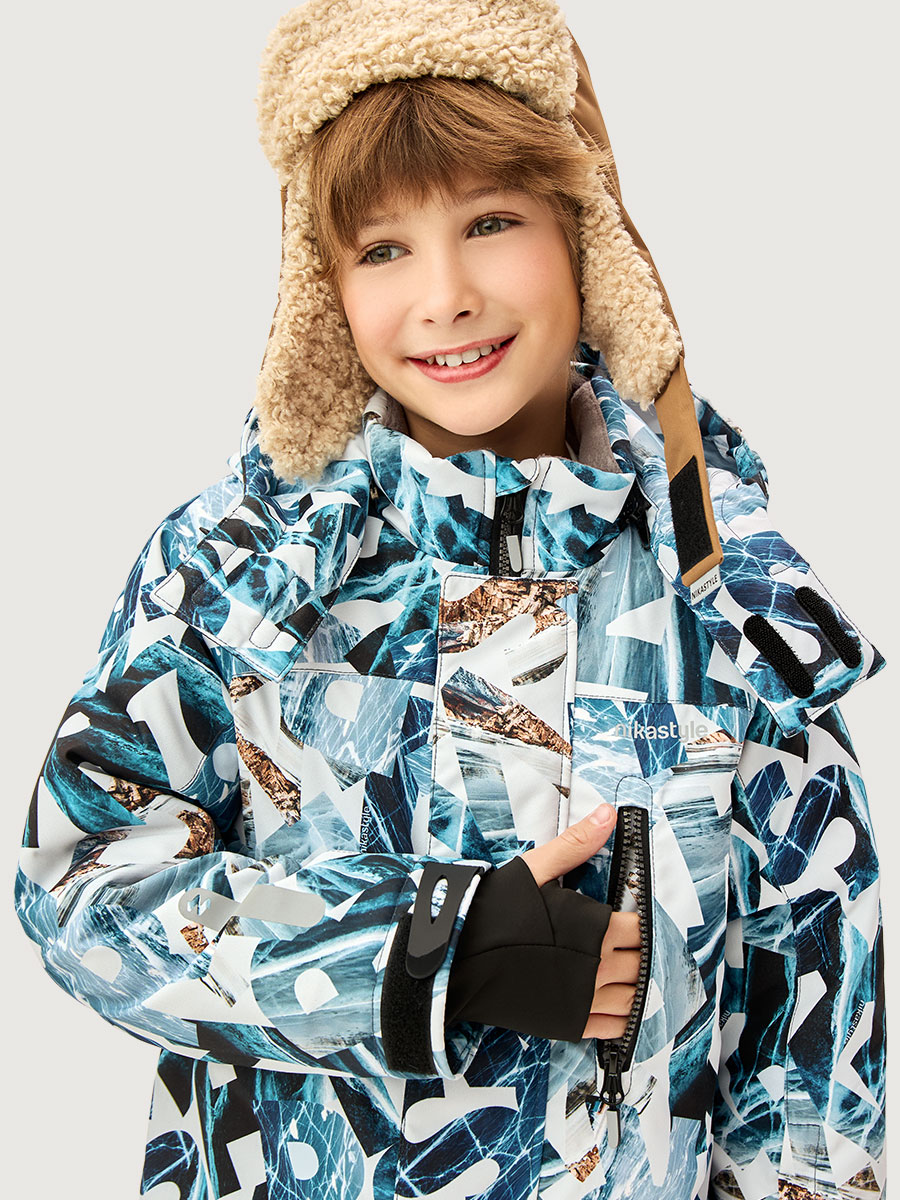 Мы все продумали до мелочей, поэтому модель дополнительно оснащена мягкими трикотажными манжетами с прорезью под палец, флисовая подкладка до середины бедра, область колен и шов сидения проклеены, места повышенного трения выполнены из усиленной ткани, снегозащитные муфты на брючинах, регулировка объема брюк под обувь на молнии, светоотражающие элементы для безопасности ребенка в темное время суток.