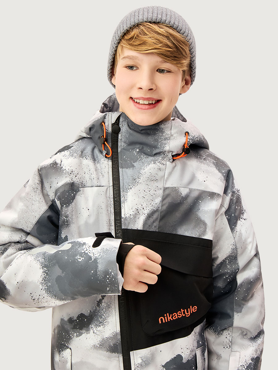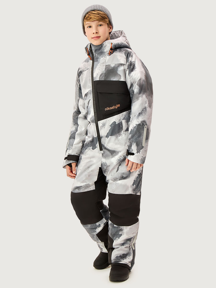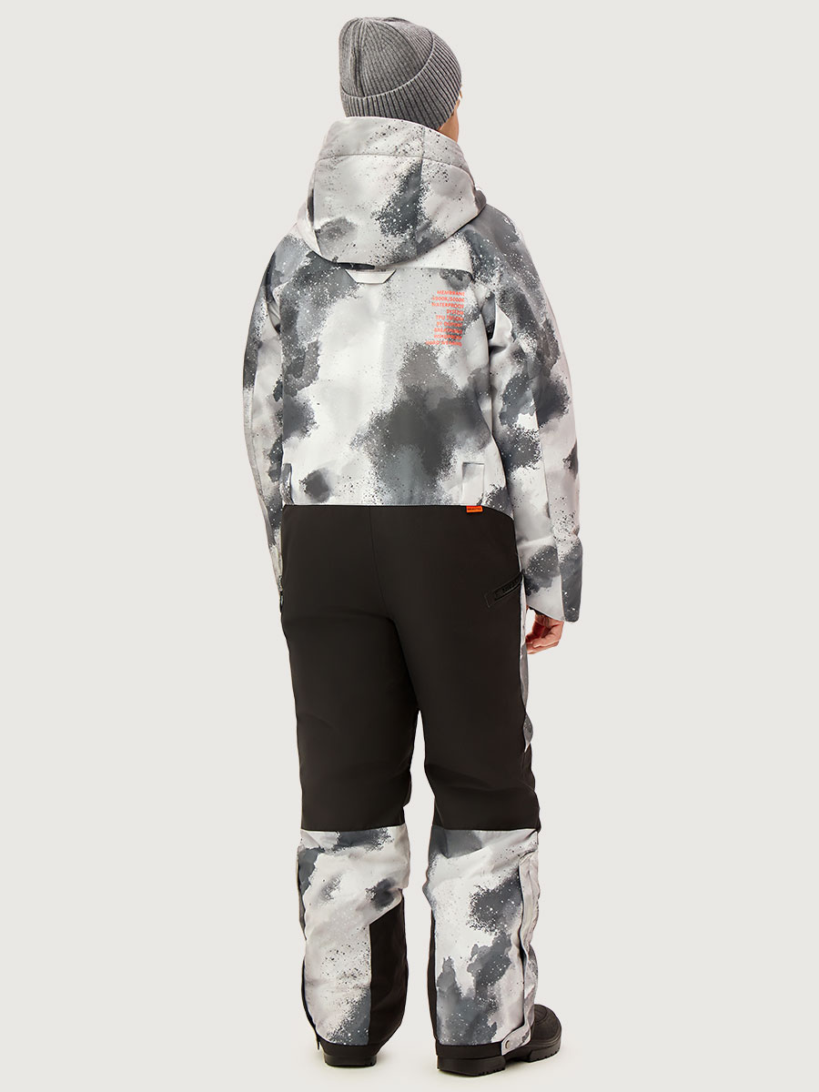 Каждая деталь продумана, чтобы обеспечить комфорт: смещенная центральная застежка с водонепроницаемой молнией, ветрозащитная планка, карманы на молнии и накладной карман с клапаном на липах, внутренний карман на молнии, капюшон с кулисой для регулировки объема, карман на рукаве под ски-пасс, регулировка ширины по низу рукава, внутренние бретели для возможности снять верхнюю часть изделия в помещении. Мы все продумали до мелочей, поэтому модель дополнительно оснащена трикотажными манжетами с прорезью под палец, область колен и шов сидения проклеены, места повышенного трения выполнены из усиленной ткани, снегозащитные муфты на брючинах, регулировка объема брюк под обувь на молнии, светоотражающие элементы для безопасности ребенка в темное время суток.