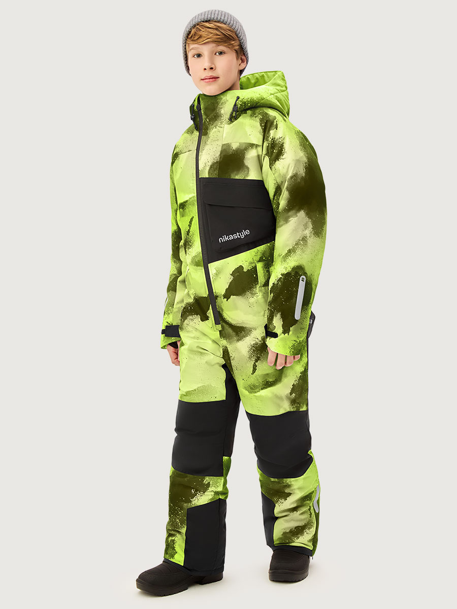 Каждая деталь продумана, чтобы обеспечить комфорт: смещенная центральная застежка с водонепроницаемой молнией, ветрозащитная планка, карманы на молнии и накладной карман с клапаном на липах, внутренний карман на молнии, капюшон с кулисой для регулировки объема, карман на рукаве под ски-пасс, регулировка ширины по низу рукава, внутренние бретели для возможности снять верхнюю часть изделия в помещении. Мы все продумали до мелочей, поэтому модель дополнительно оснащена трикотажными манжетами с прорезью под палец, область колен и шов сидения проклеены, места повышенного трения выполнены из усиленной ткани, снегозащитные муфты на брючинах, регулировка объема брюк под обувь на молнии, светоотражающие элементы для безопасности ребенка в темное время суток.