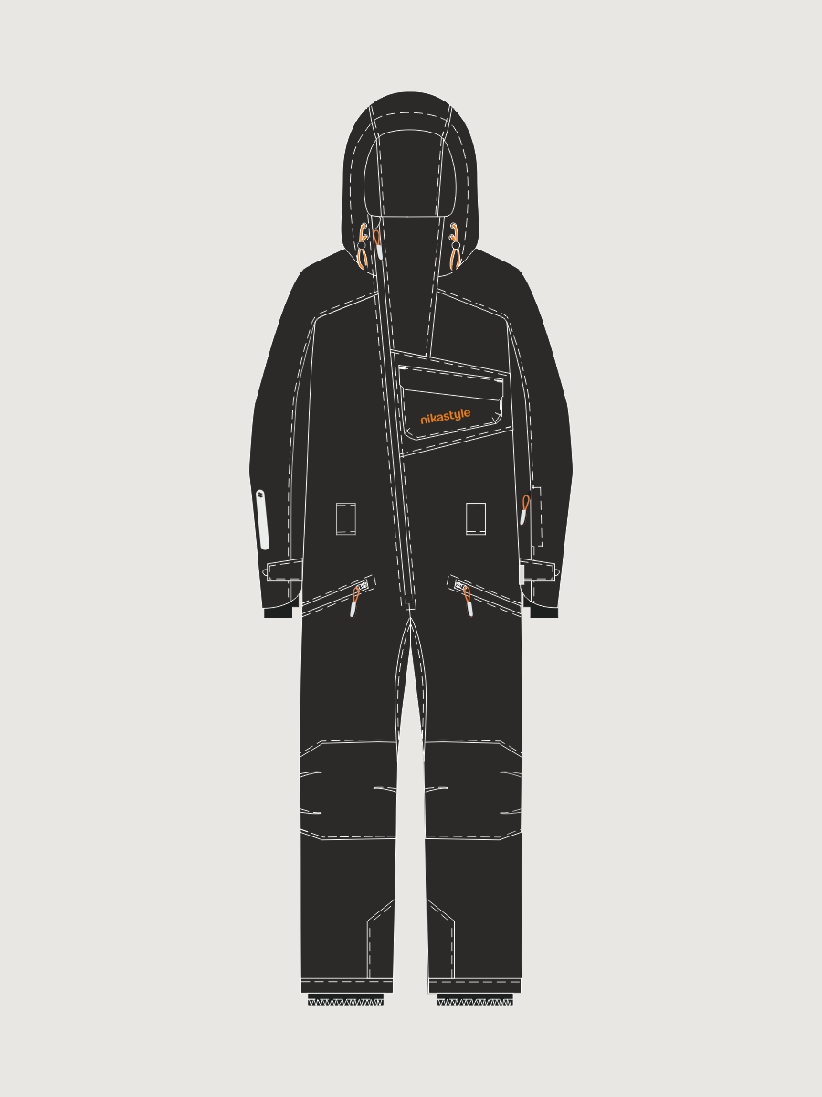 Каждая деталь продумана, чтобы обеспечить комфорт: смещенная центральная застежка с водонепроницаемой молнией, ветрозащитная планка, карманы на молнии и накладной карман с клапаном на липах, внутренний карман на молнии, капюшон с кулисой для регулировки объема, карман на рукаве под ски-пасс, регулировка ширины по низу рукава, внутренние бретели для возможности снять верхнюю часть изделия в помещении. Мы все продумали до мелочей, поэтому модель дополнительно оснащена трикотажными манжетами с прорезью под палец, область колен и шов сидения проклеены, места повышенного трения выполнены из усиленной ткани, снегозащитные муфты на брючинах, регулировка объема брюк под обувь на молнии, светоотражающие элементы для безопасности ребенка в темное время суток.