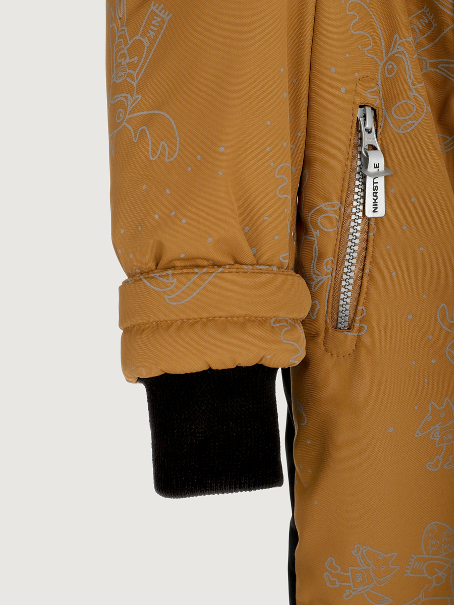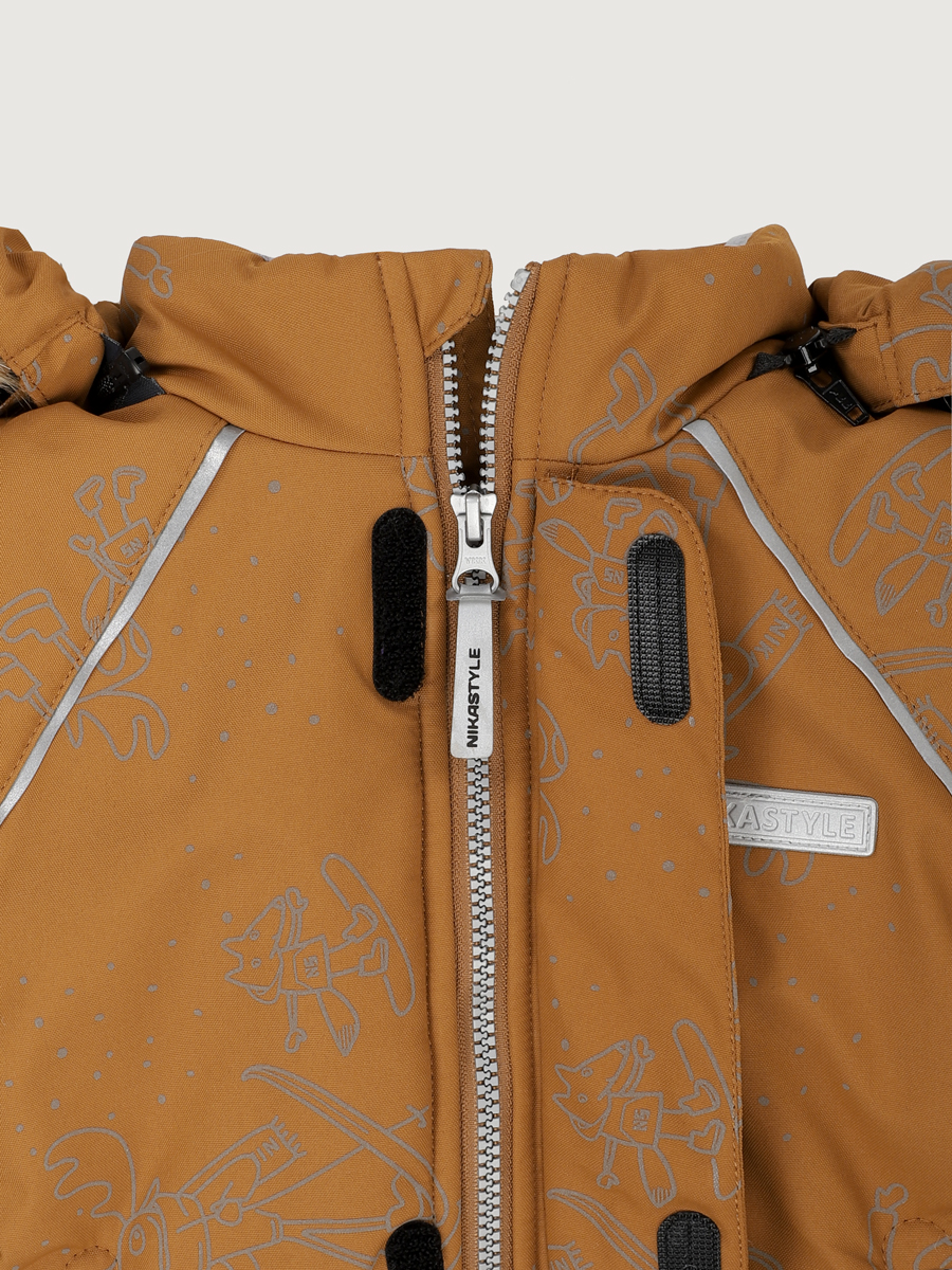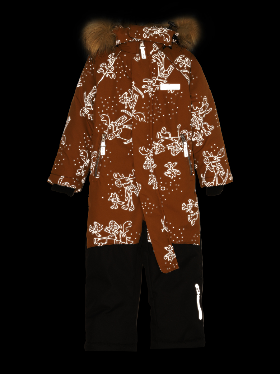 Мембранная ткань это непродуваемый и водонепроницаемый материал, который надежно защитит от ветра и влаги. Благодаря дышащим свойствам мембраны ребенку будет комфортно в любую погоду и он не вспотеет. Дополнительно на ткань нанесен светоотражающий принт. Ткань обработана снаружи экологически чистым протектором TEFLON для защиты от воды и грязи.