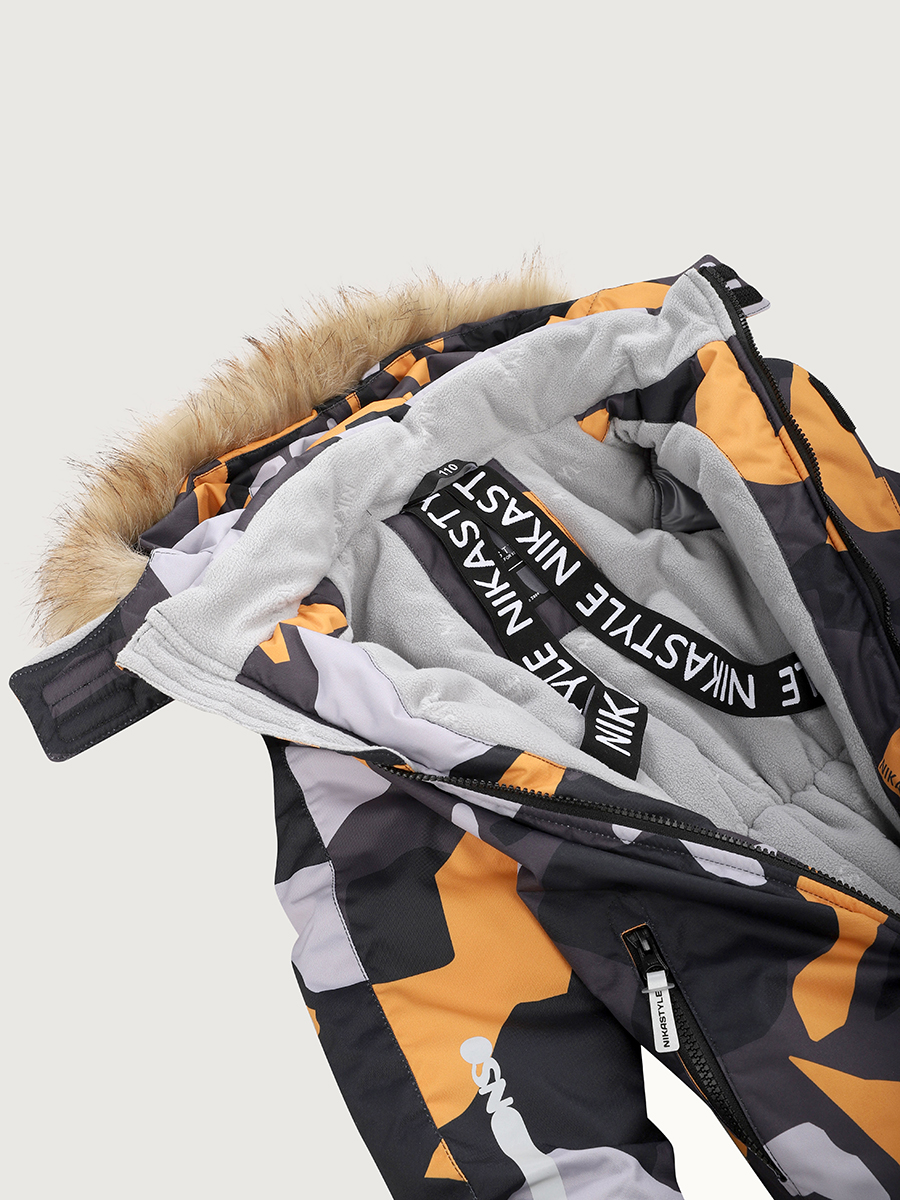 Комбинезон из мембранной ткани 5000/5000 с водо-грязеотталкивающей технологией TEFLON. Мембранная ткань это непродуваемый и водонепроницаемый материал, который надежно защитит от ветра и влаги. Благодаря дышащим свойствам мембраны ребенку будет комфортно в любую погоду, и он не вспотеет. Ткань обработана снаружи экологически чистым протектором TEFLON для защиты от воды и грязи.