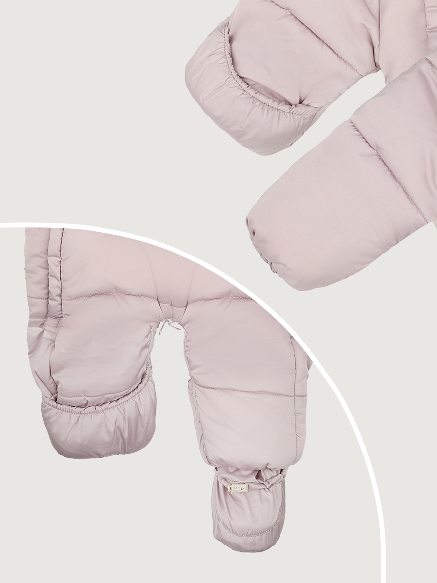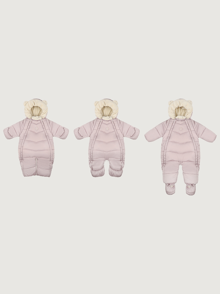 Комбинезон с помощью молний трансформируется из конверта для новорожденных в комбинезон, модификация выбирается в зависимости от возраста. Комбинезон из ткани с ветро- и водонепроницаемыми пропитками. Гипоаллергенная мягкая подкладка из 100% хлопка-велюра идеальна для малышей. В комплекте съемные пинетки.