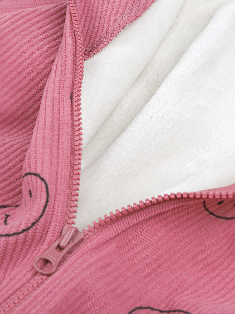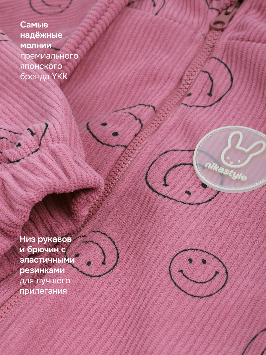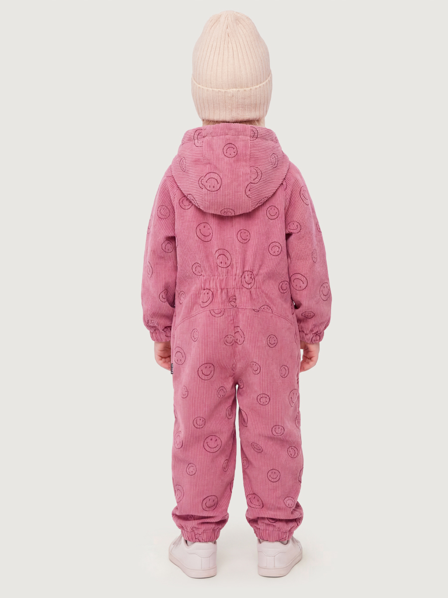 Комбинезон СМАЙЛ из вельвета, дублированного велюром. Вельвет - это мягкая, бархатистая ткань в рубчик. Благодаря тому, что с изнаночной стороны вельвет продублирован мягким велюром, ребенку будет комфортно и тепло в прохладные дни.
