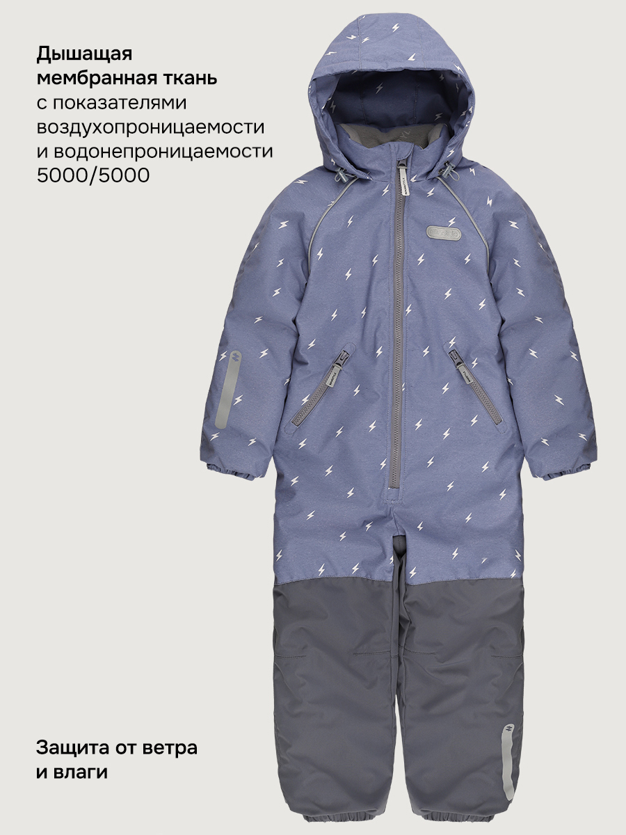 Мембранная ткань - это непродуваемый и водонепроницаемый материал, который надежно защитит от ветра и влаги. Благодаря дышащим свойствам мембраны ребенку будет комфортно в любую погоду, и он не вспотеет.
