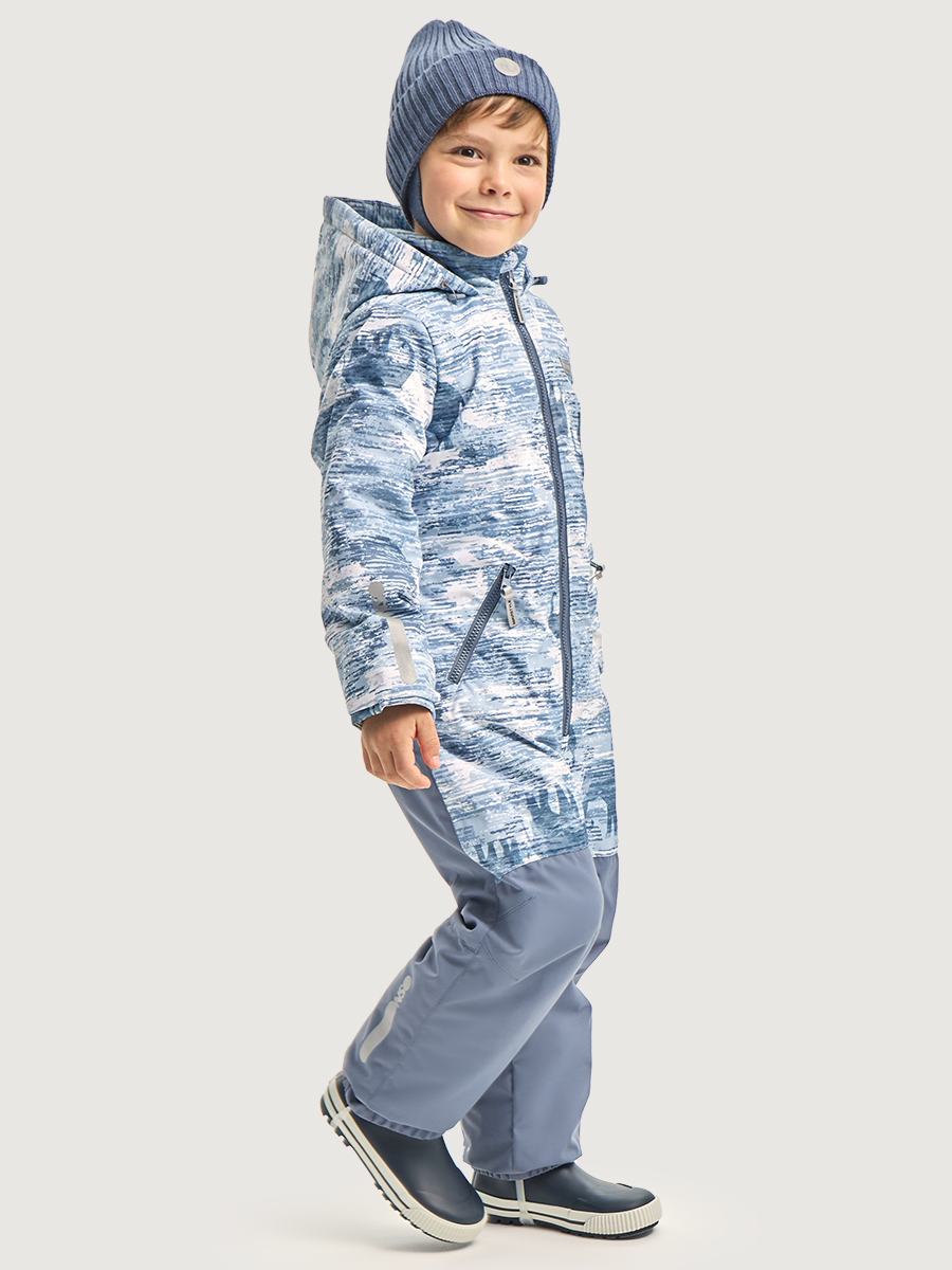 Мембранная ткань - это непродуваемый и водонепроницаемый материал, который надежно защитит от ветра и влаги. Благодаря дышащим свойствам мембраны ребенку будет комфортно в любую погоду, и он не вспотеет.