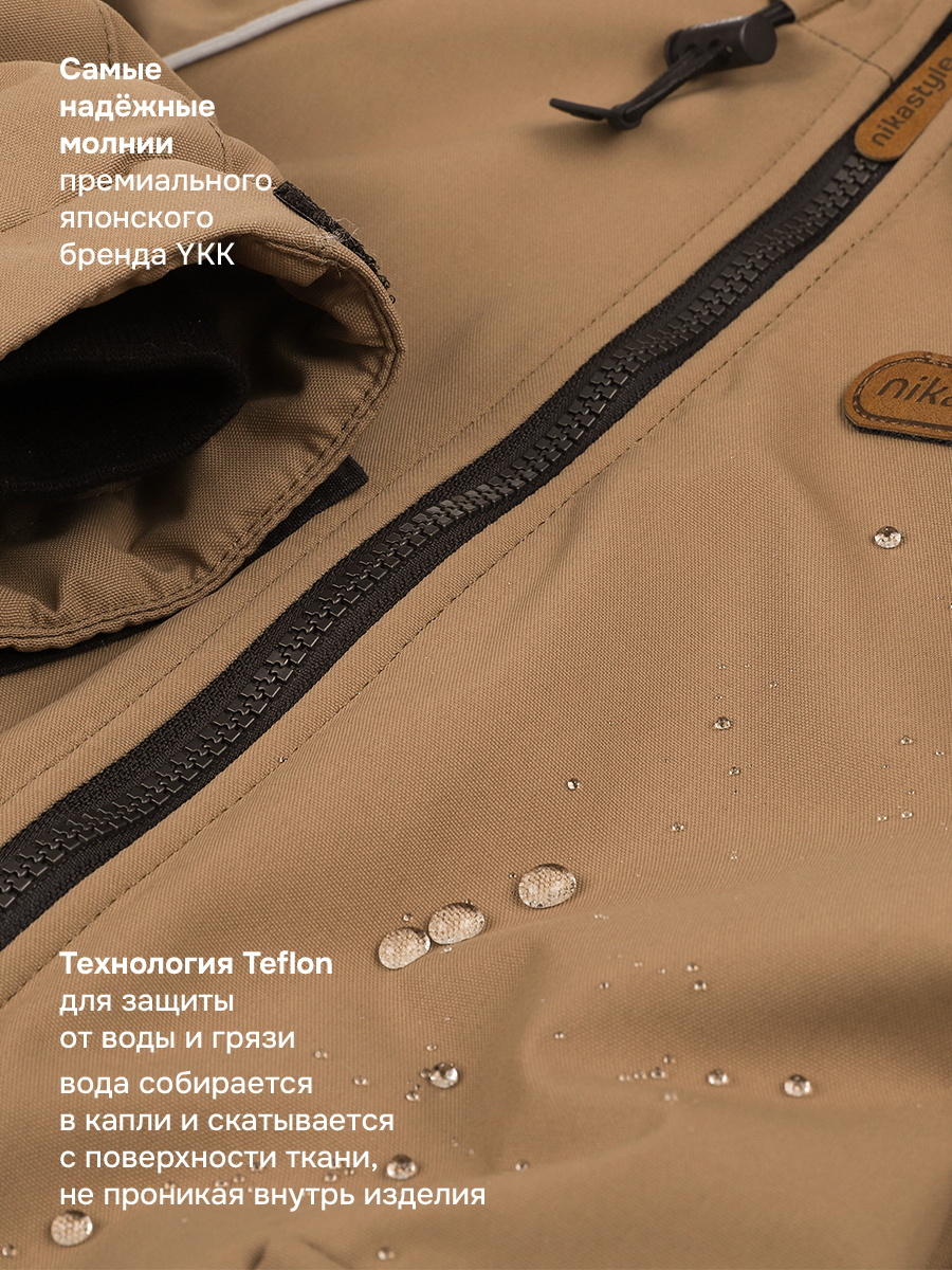 Ткань обработана снаружи экологически чистым протектором TEFLON для защиты от воды и грязи. Дополнительно на ткань нанесен светоотражающий принт. Мембрана в сочетании с утеплителем нового поколения FIBERlite сохранит тепло во время прогулок, позволит телу дышать. Флисовая подкладка отводит влагу и имеет хорошие теплоизоляционные свойства.