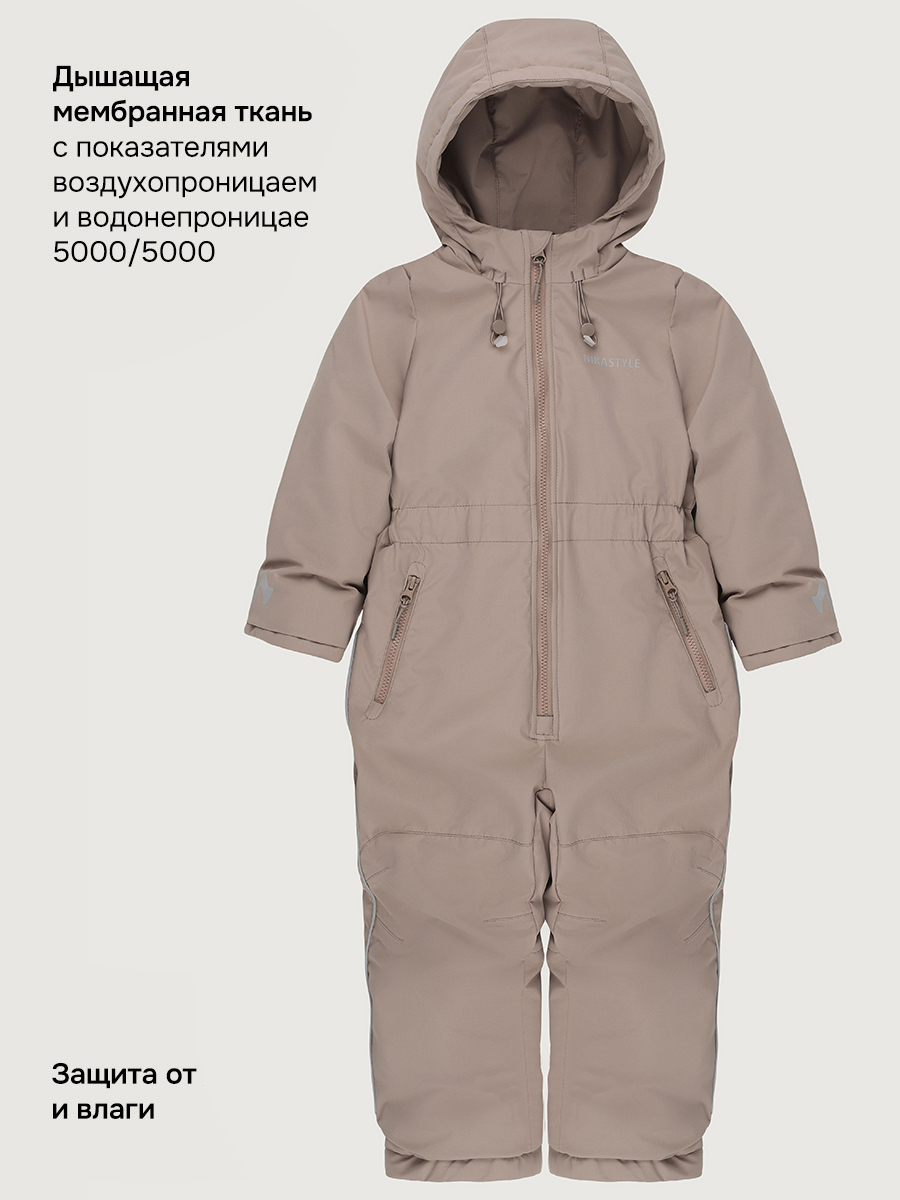 Комбинезон из мембранной ткани 5000/5000 с водо-грязеотталкивающей технологией TEFLON. Мембранная ткань - это не продуваемый и водонепроницаемый материал, который надежно защищает от ветра и влаги. Благодаря дышащим свойствам мембраны ребенку будет комфортно в любую погоду, и он не вспотеет.