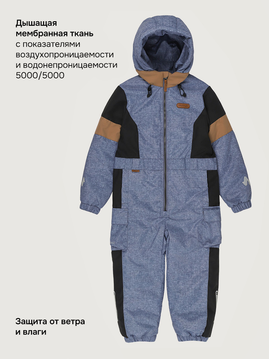 Мембранная ткань - это непродуваемый и водонепроницаемый материал, который надежно защитит от ветра и влаги. Благодаря дышащим свойствам мембраны ребенку будет комфортно в любую погоду, и он не вспотеет.