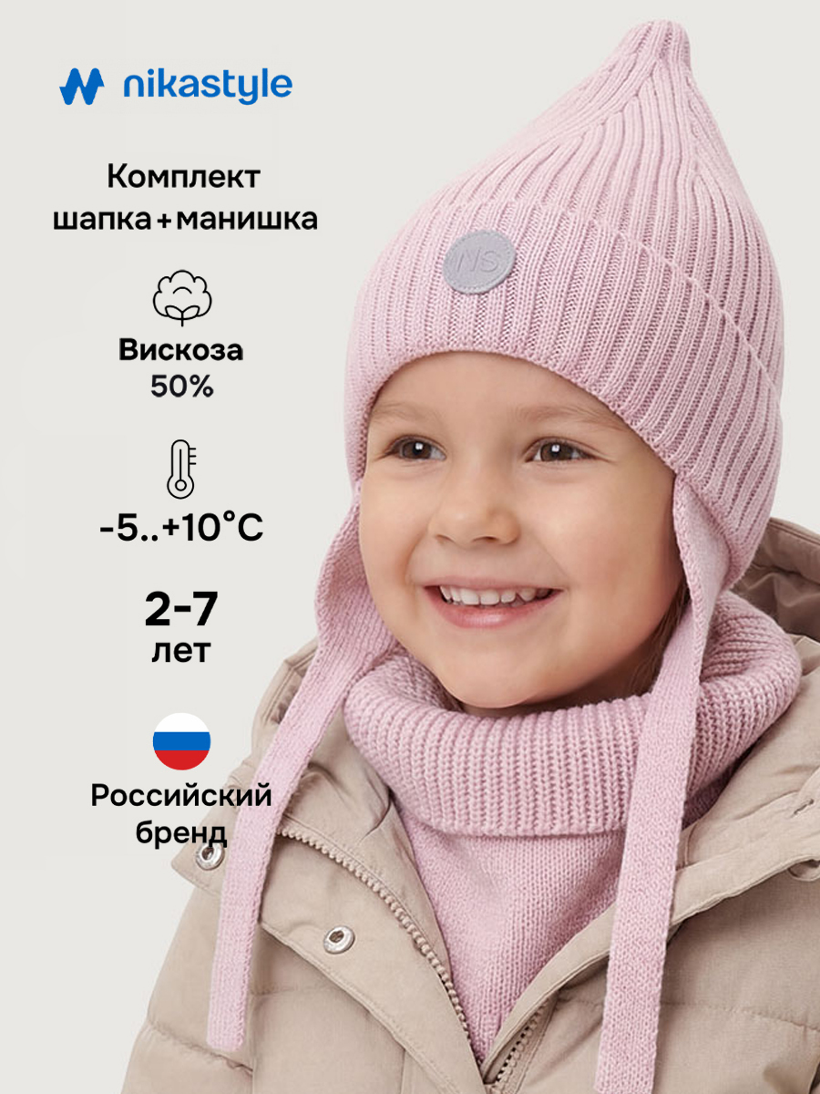 Базовые цвета пряжи позволяет комплектовать данную модель с большим количеством вещей вашего ребенка. Наличие светоотражающих элементов для безопасности ребенка в темное время суток. Комфортная температура эксплуатации от -5°С до +10°С. Комплекты отлично сочетаются с верхней одеждой NIKASTYLE.