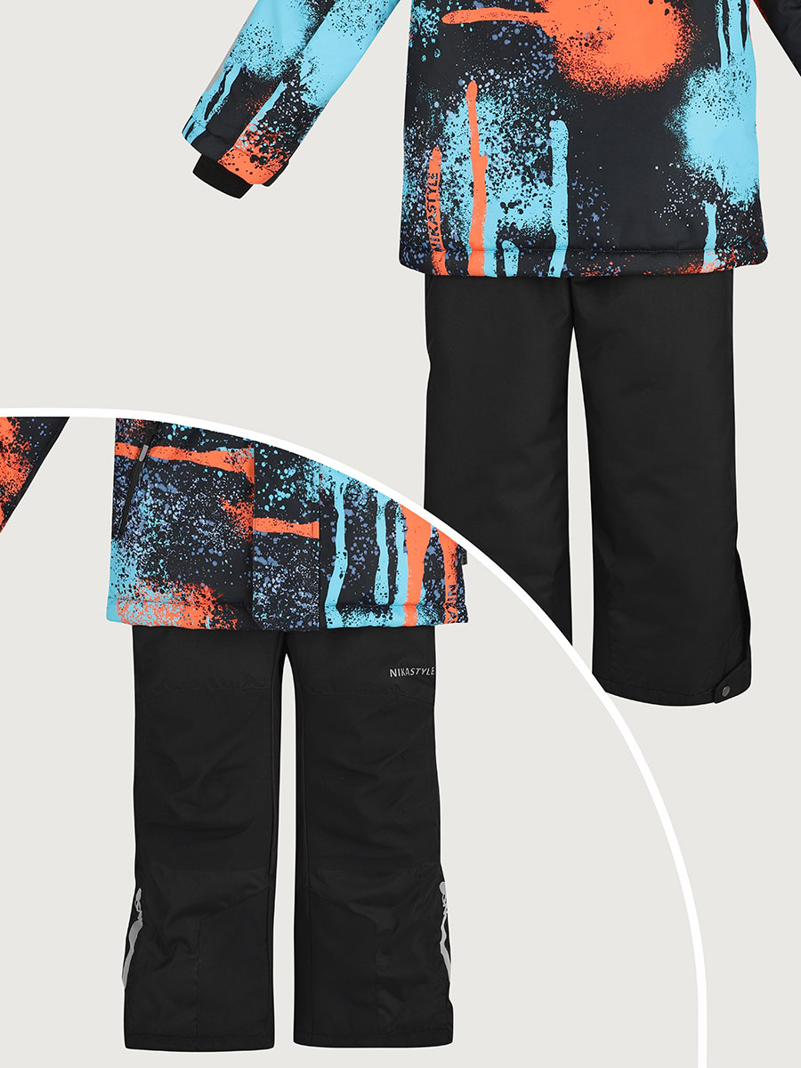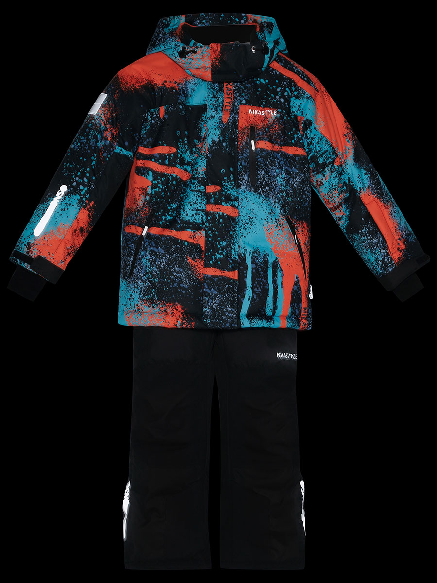 Костюм ГРАФФИТИ из мембранной ткани 5000/5000 с водо-грязеотталкивающей технологией TEFLON. Мембранная ткань это не продуваемый и водонепроницаемый материал, который надежно защищает от ветра и влаги. Благодаря дышащим свойствам мембраны ребенку будет комфортно в любую погоду, и он не вспотеет. Ткань обработана снаружи экологически чистым протектором TEFLON для защиты от воды и грязи.