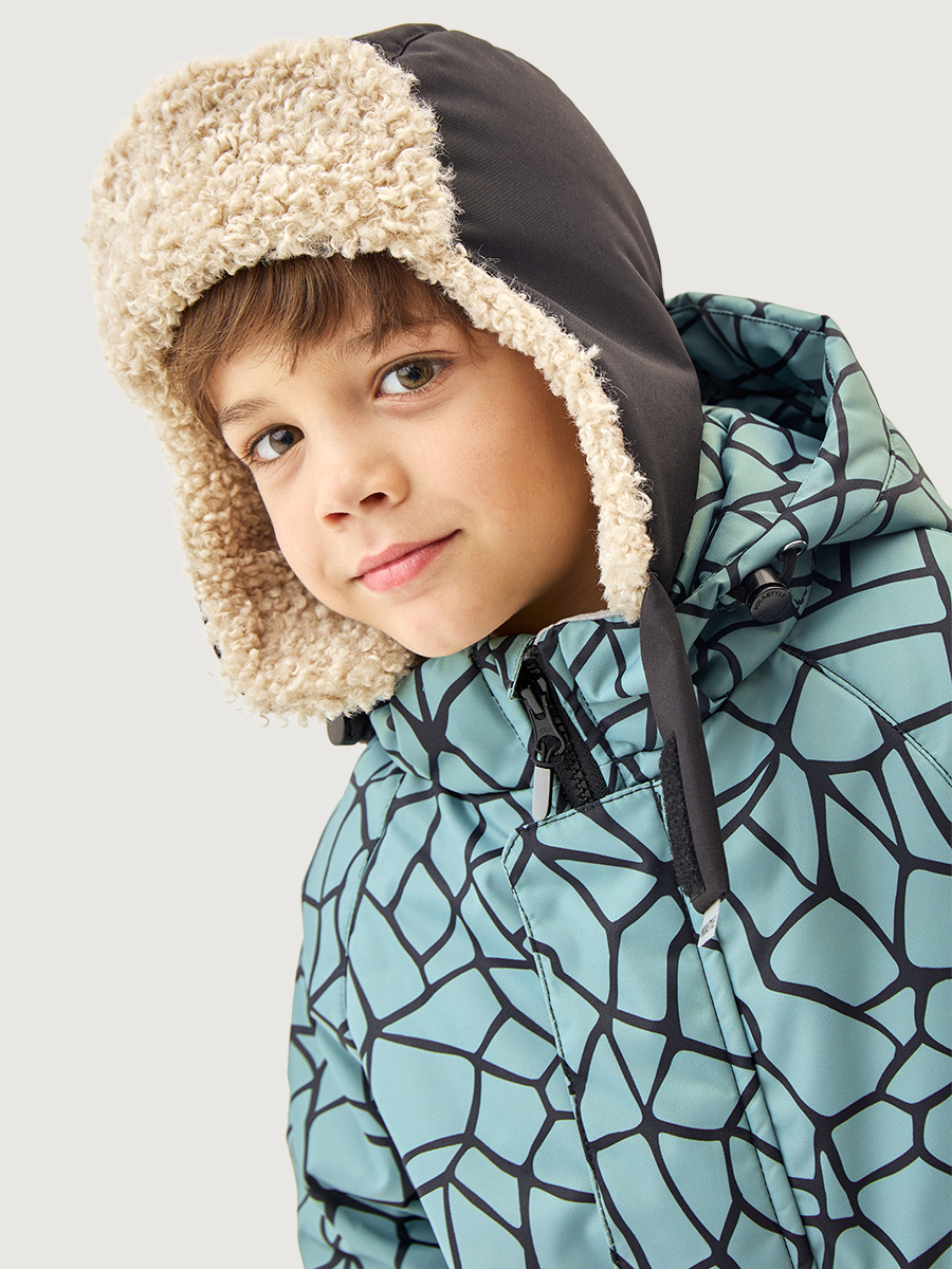 Костюм из мембранной ткани 5000/5000 с водо- грязеотталкивающей технологией TEFLON. Мембранная ткань это не продуваемый и водонепроницаемый материал, который надежно защищает от ветра и влаги. Благодаря дышащим свойствам мембраны ребенку будет комфортно в любую погоду и он не вспотеет. Ткань обработана снаружи экологически чистым протектором TEFLON для защиты от воды и грязи.