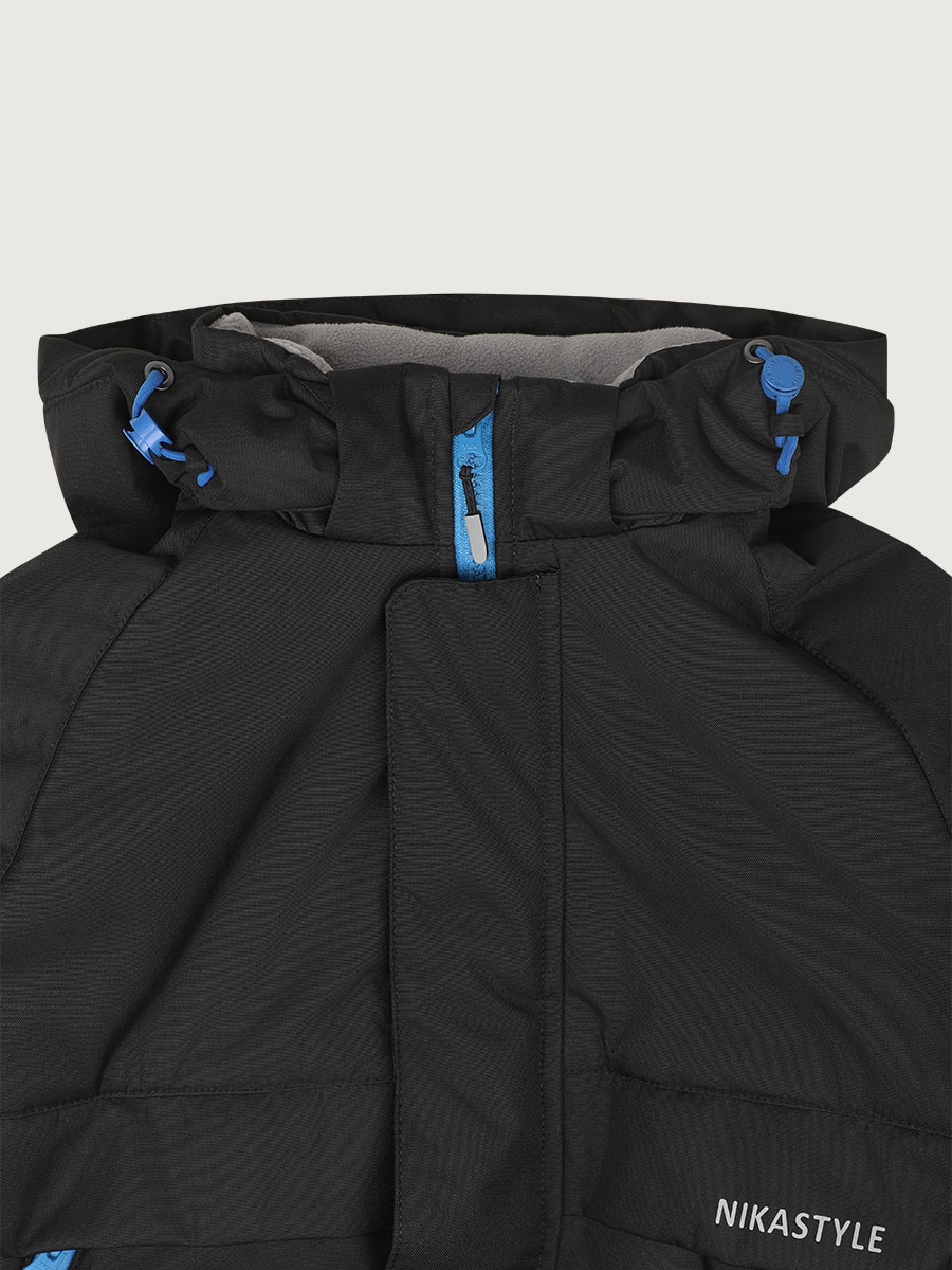 - кулиса для регулировки объема по капюшону и низу куртки,
