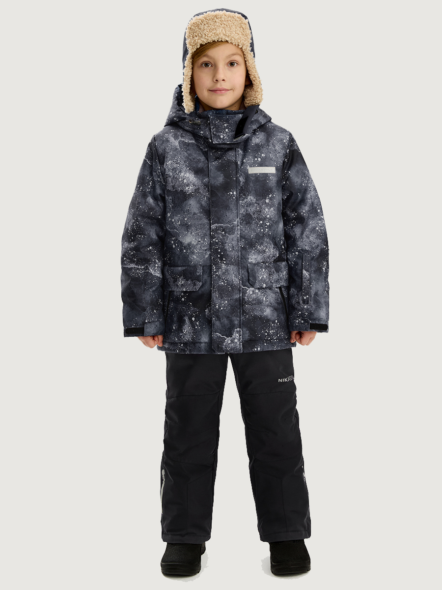 Костюм ВСЕЛЕННАЯ из мембранной ткани 5000/5000 с водо-грязеотталкивающей технологией TEFLON. Мембранная ткань это не продуваемый и водонепроницаемый материал, который надежно защищает от ветра и влаги. Благодаря дышащим свойствам мембраны ребенку будет комфортно в любую погоду, и он не вспотеет. Дополнительно на ткань нанесен светоотражающий принт. Ткань обработана снаружи экологически чистым протектором TEFLON для защиты от воды и грязи.