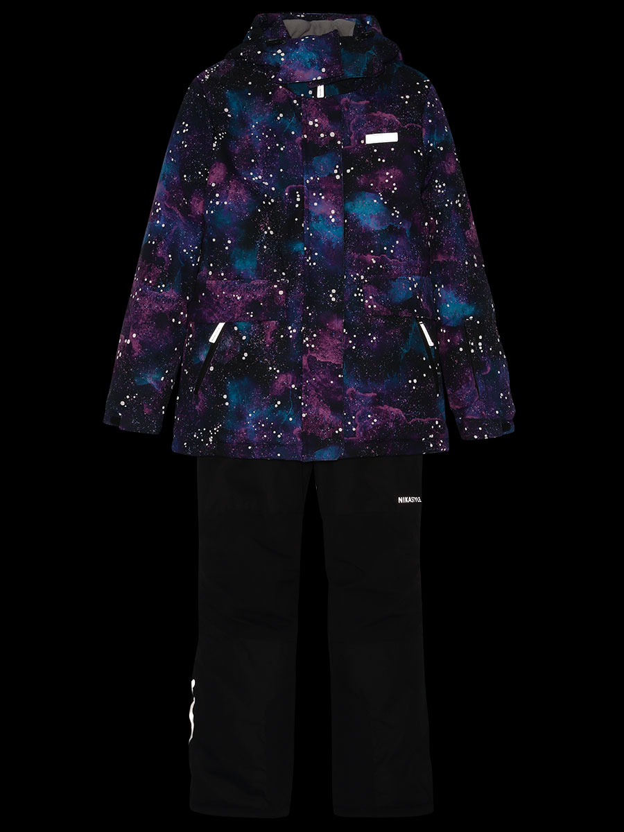 Костюм ВСЕЛЕННАЯ из мембранной ткани 5000/5000 с водо-грязеотталкивающей технологией TEFLON. Мембранная ткань это не продуваемый и водонепроницаемый материал, который надежно защищает от ветра и влаги. Благодаря дышащим свойствам мембраны ребенку будет комфортно в любую погоду, и он не вспотеет. Дополнительно на ткань нанесен светоотражающий принт. Ткань обработана снаружи экологически чистым протектором TEFLON для защиты от воды и грязи.