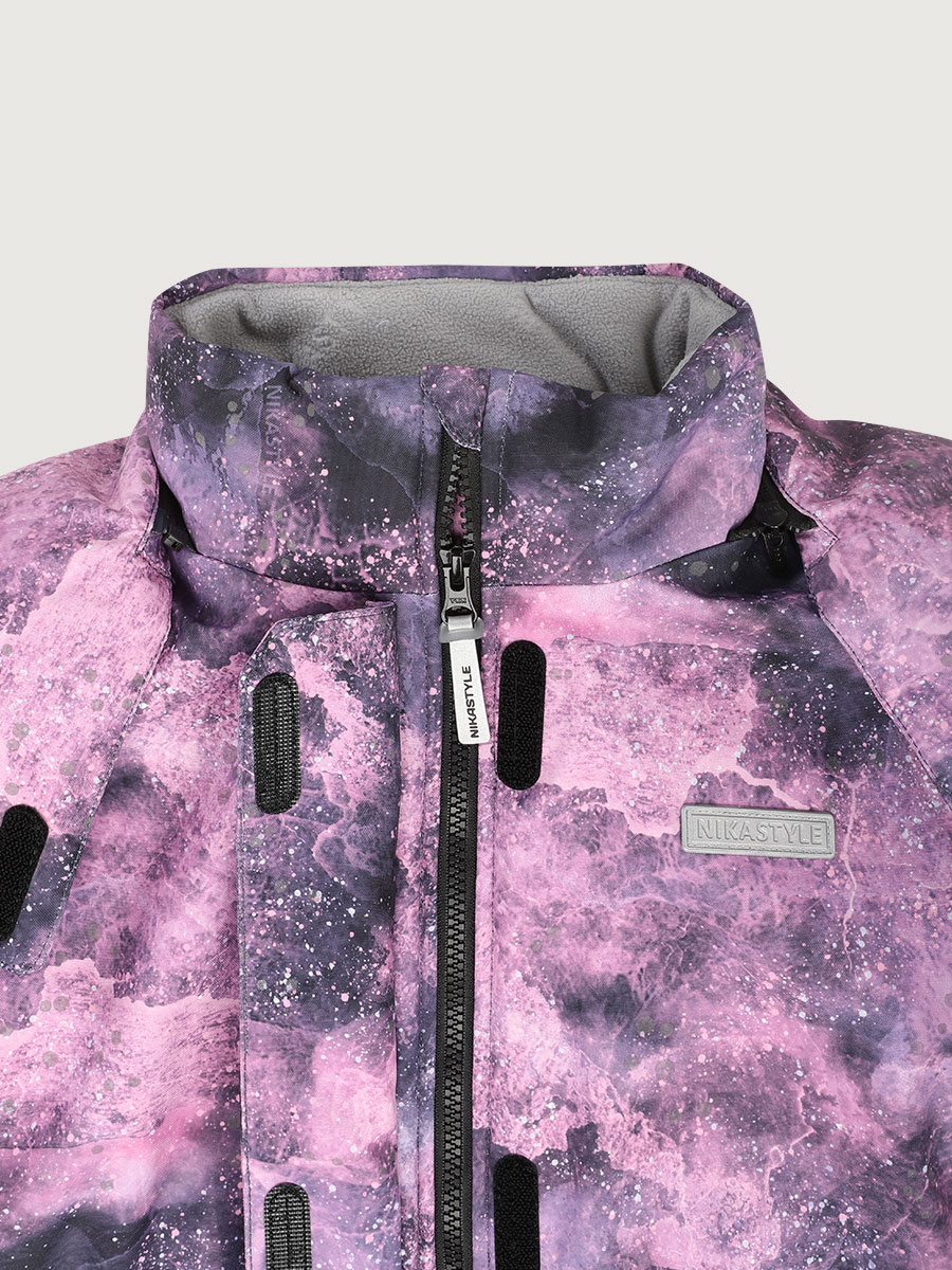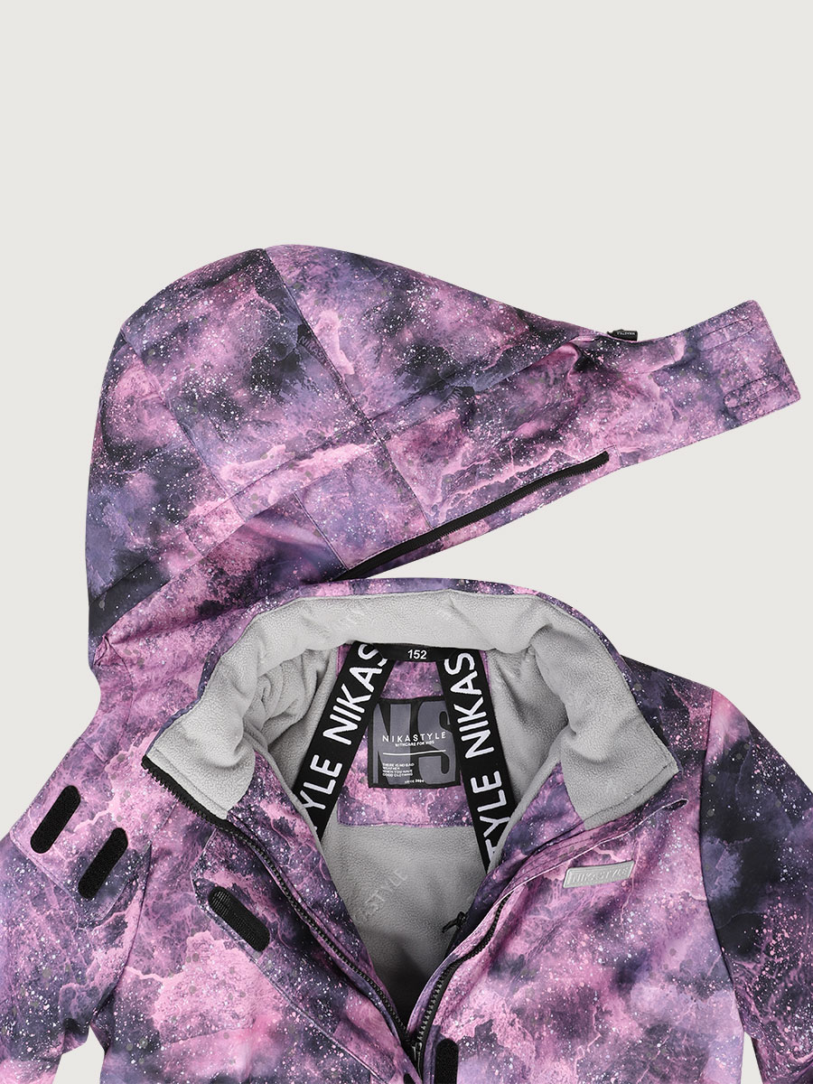 Костюм ВСЕЛЕННАЯ из мембранной ткани 5000/5000 с водо-грязеотталкивающей технологией TEFLON. Мембранная ткань это не продуваемый и водонепроницаемый материал, который надежно защищает от ветра и влаги. Благодаря дышащим свойствам мембраны ребенку будет комфортно в любую погоду, и он не вспотеет. Дополнительно на ткань нанесен светоотражающий принт. Ткань обработана снаружи экологически чистым протектором TEFLON для защиты от воды и грязи.