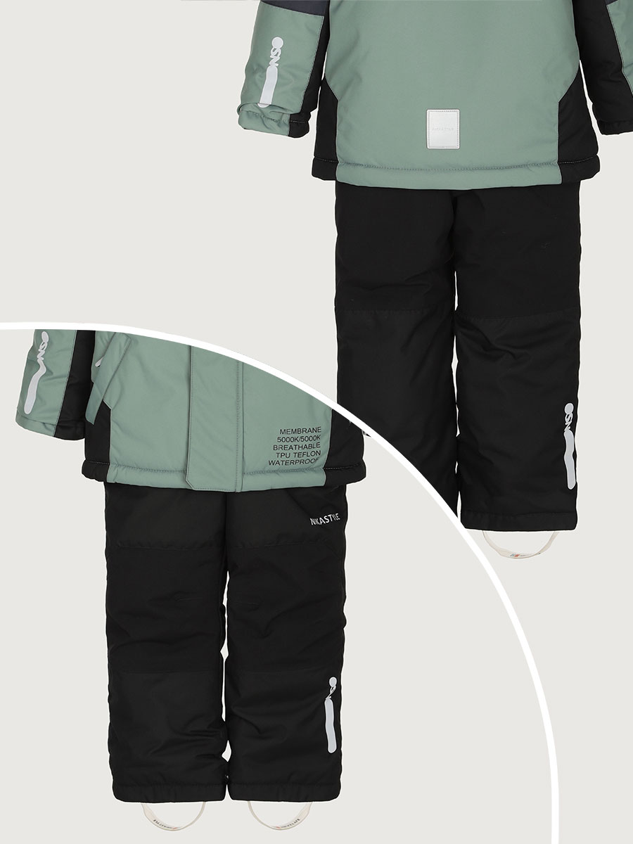 Мембранная ткань это не продуваемый и водонепроницаемый материал, который надежно защищает от ветра и влаги. Благодаря дышащим свойствам мембраны ребенку будет комфортно в любую погоду и он не вспотеет. Ткань обработана снаружи экологически чистым протектором TEFLON для защиты от воды и грязи.