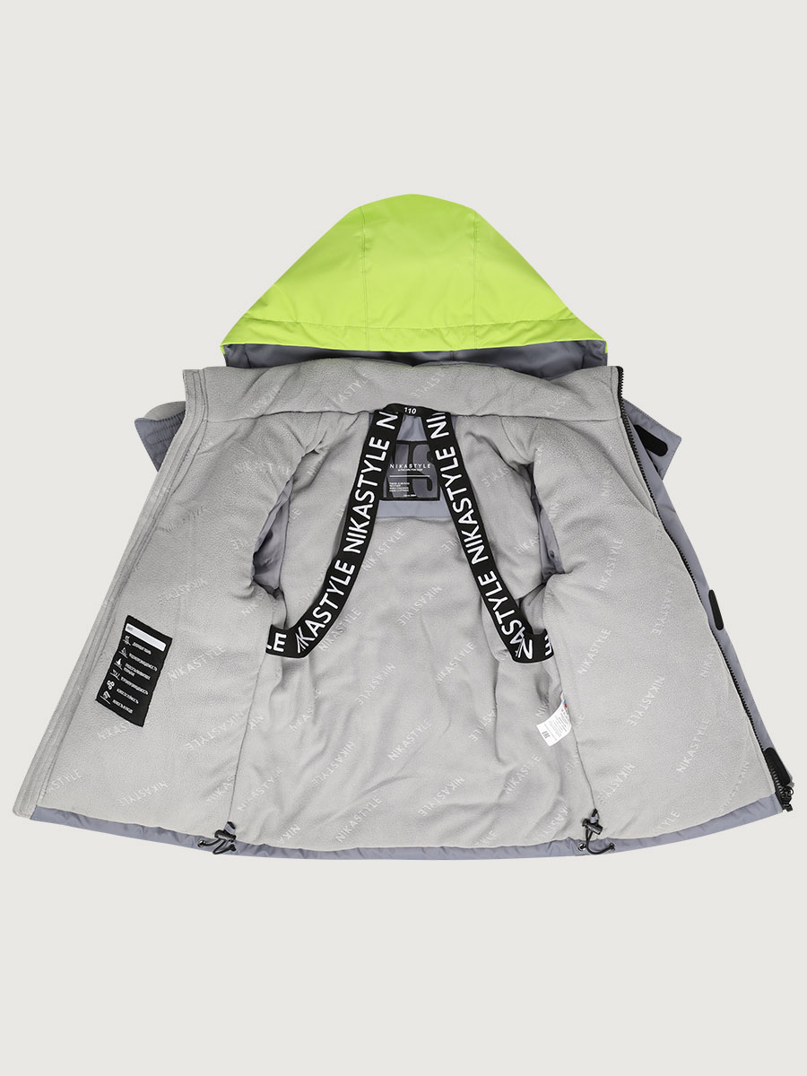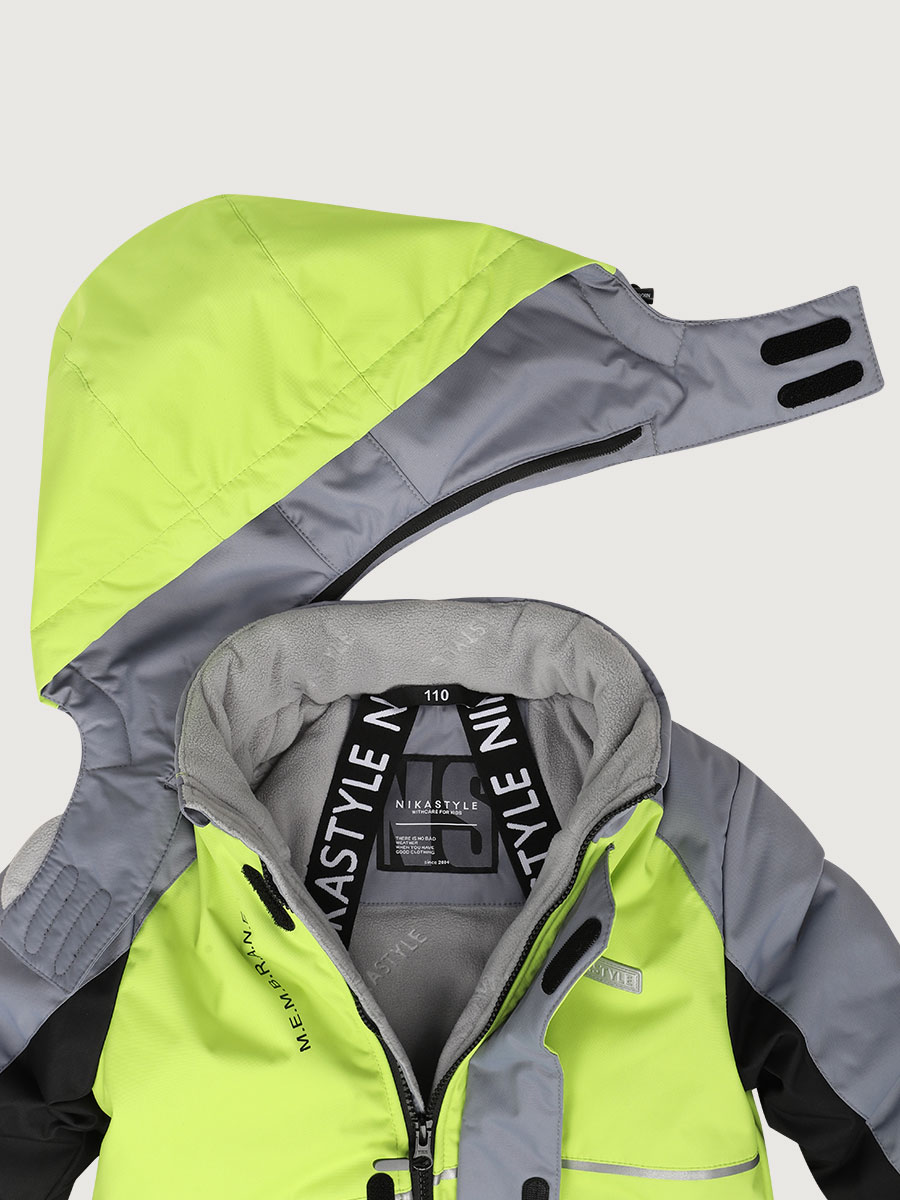 Мембранная ткань это не продуваемый и водонепроницаемый материал, который надежно защищает от ветра и влаги. Благодаря дышащим свойствам мембраны ребенку будет комфортно в любую погоду и он не вспотеет. Ткань обработана снаружи экологически чистым протектором TEFLON для защиты от воды и грязи.