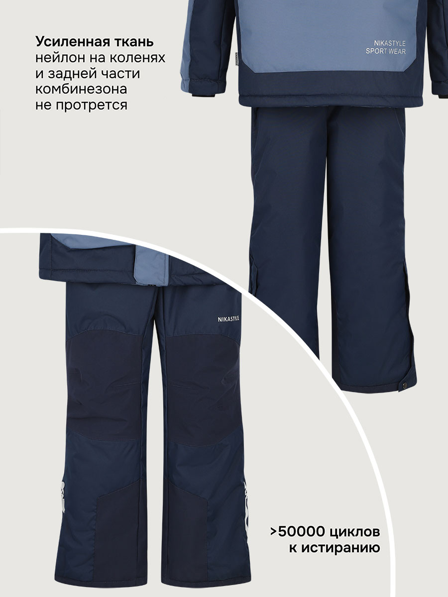 Область колен и шов сидения проклеены, места повышенного трения выполнены из особо прочной ткани.