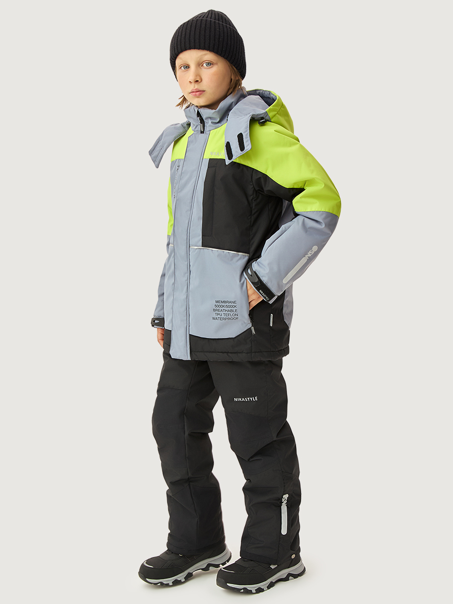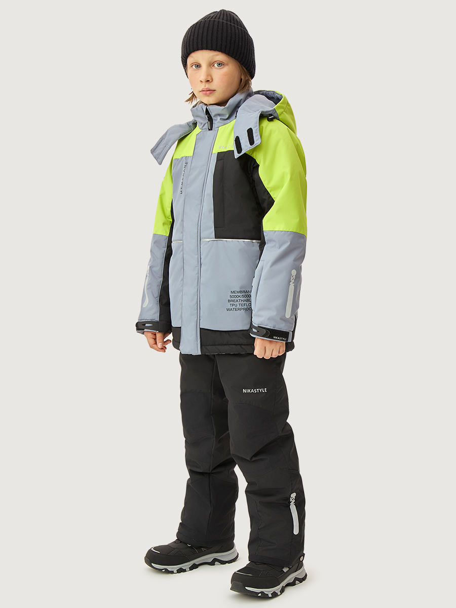 Костюм КИБЕР из мембранной ткани 5000/5000 с водо-грязеотталкивающей технологией TEFLON. Мембранная ткань это не продуваемый и водонепроницаемый материал, который надежно защищает от ветра и влаги. Благодаря дышащим свойствам мембраны ребенку будет комфортно в любую погоду, и он не вспотеет. Ткань обработана снаружи экологически чистым протектором TEFLON для защиты от воды и грязи.