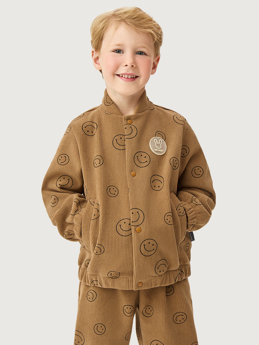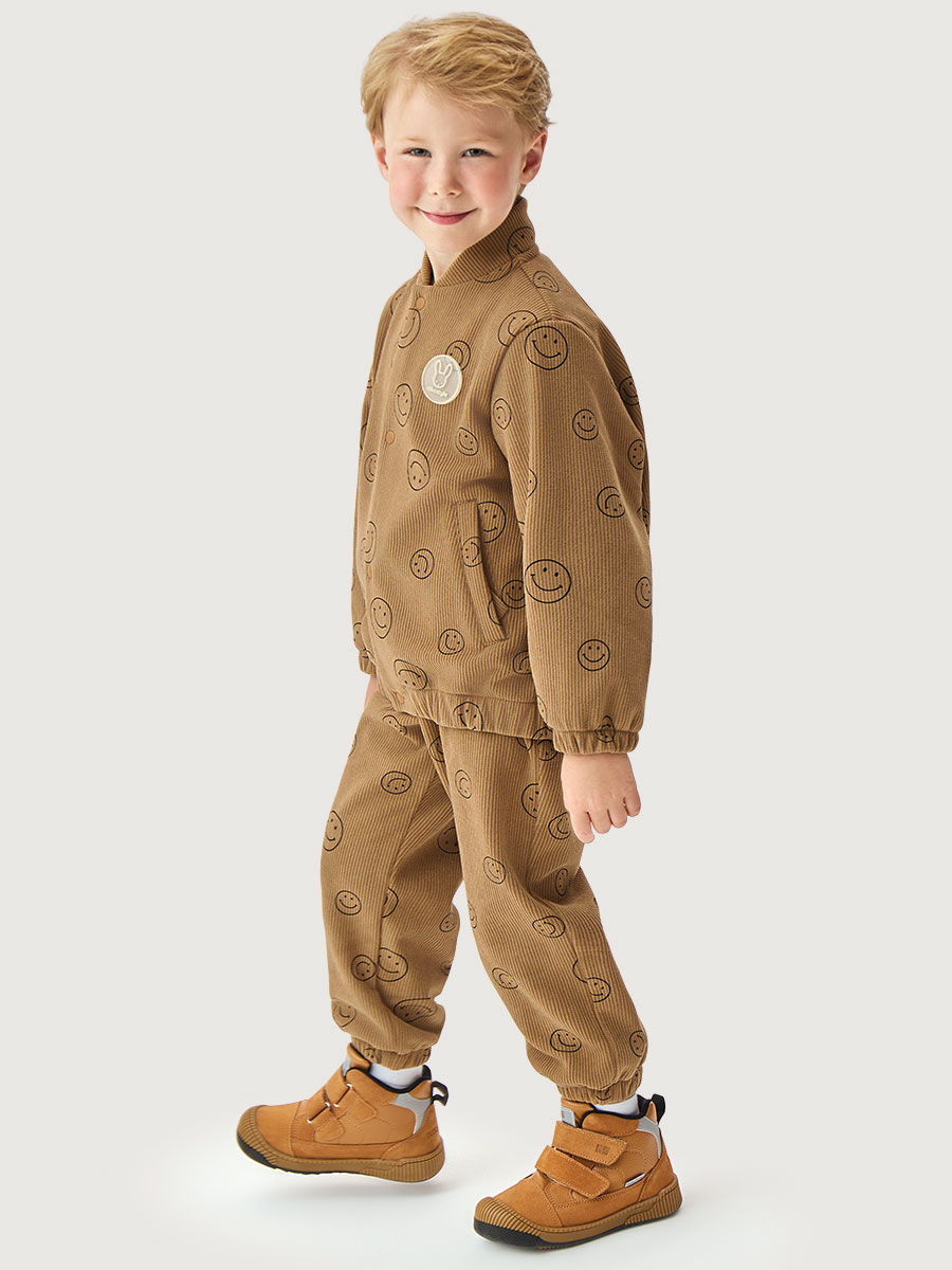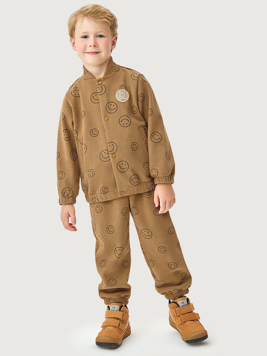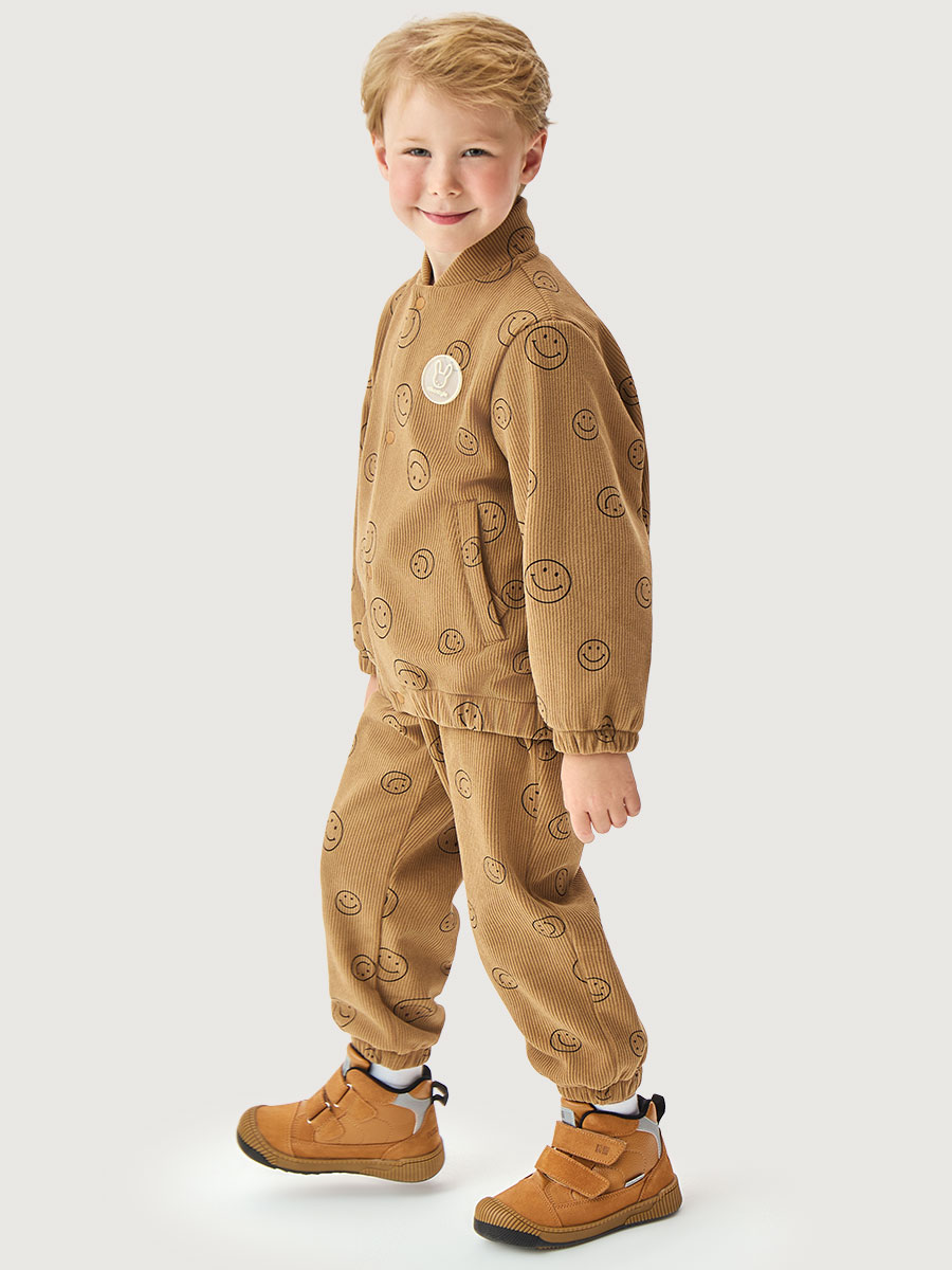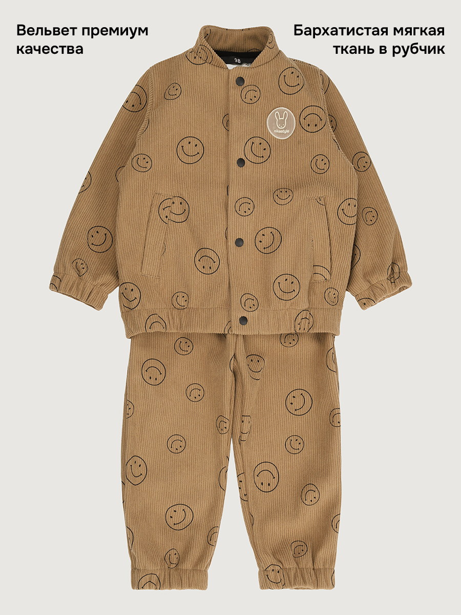 Костюм СМАЙЛ из вельвета, дублированного велюром. Вельвет - это мягкая, бархатистая ткань в рубчик. Благодаря тому, что с изнаночной стороны вельвет продублирован мягким велюром ребенку будет комфортно и тепло в прохладные дни.