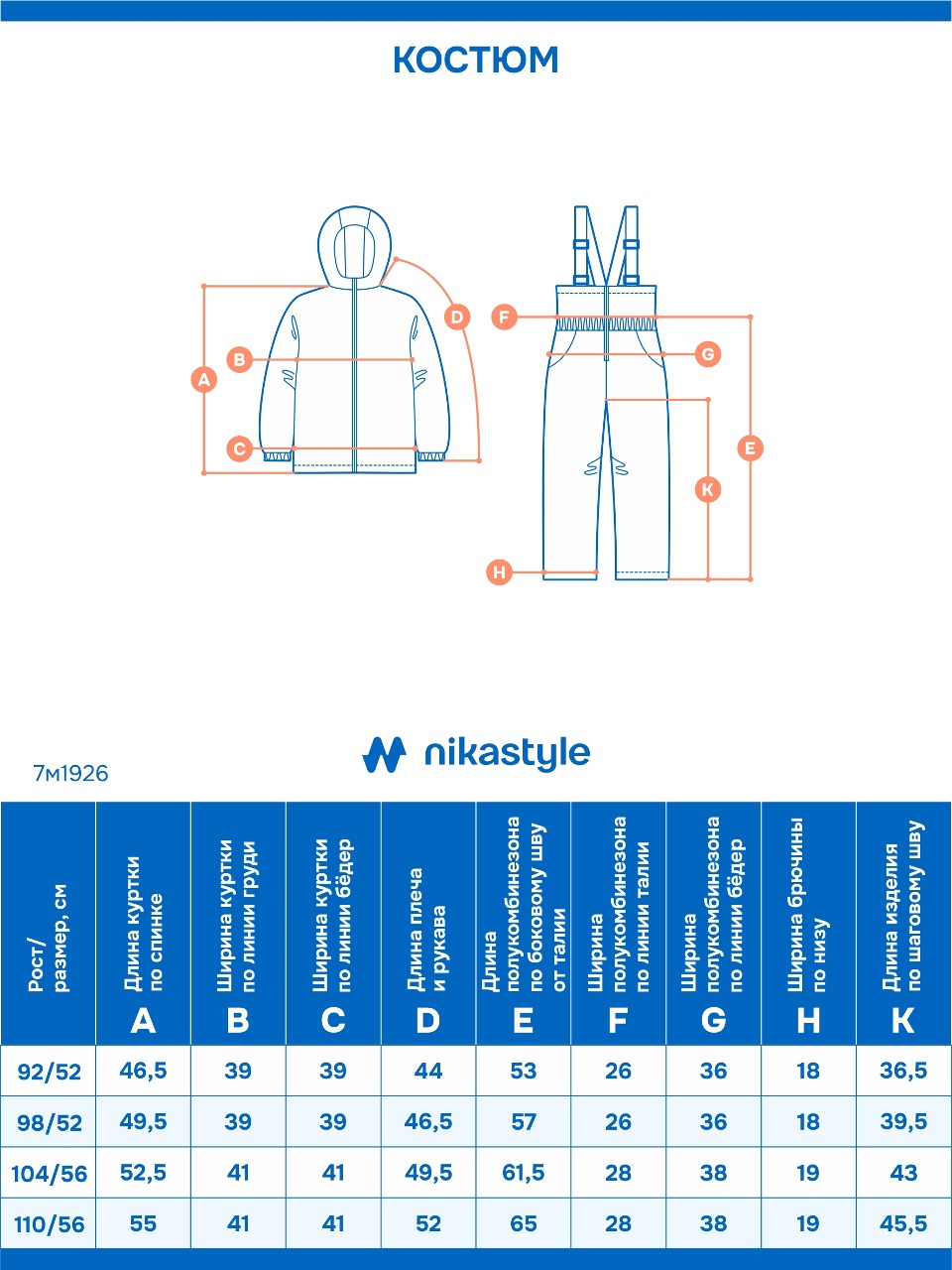 Костюм СКАНДИ с системой роста на один размер (длина рукавов и брючин увеличивается на 4-5см).