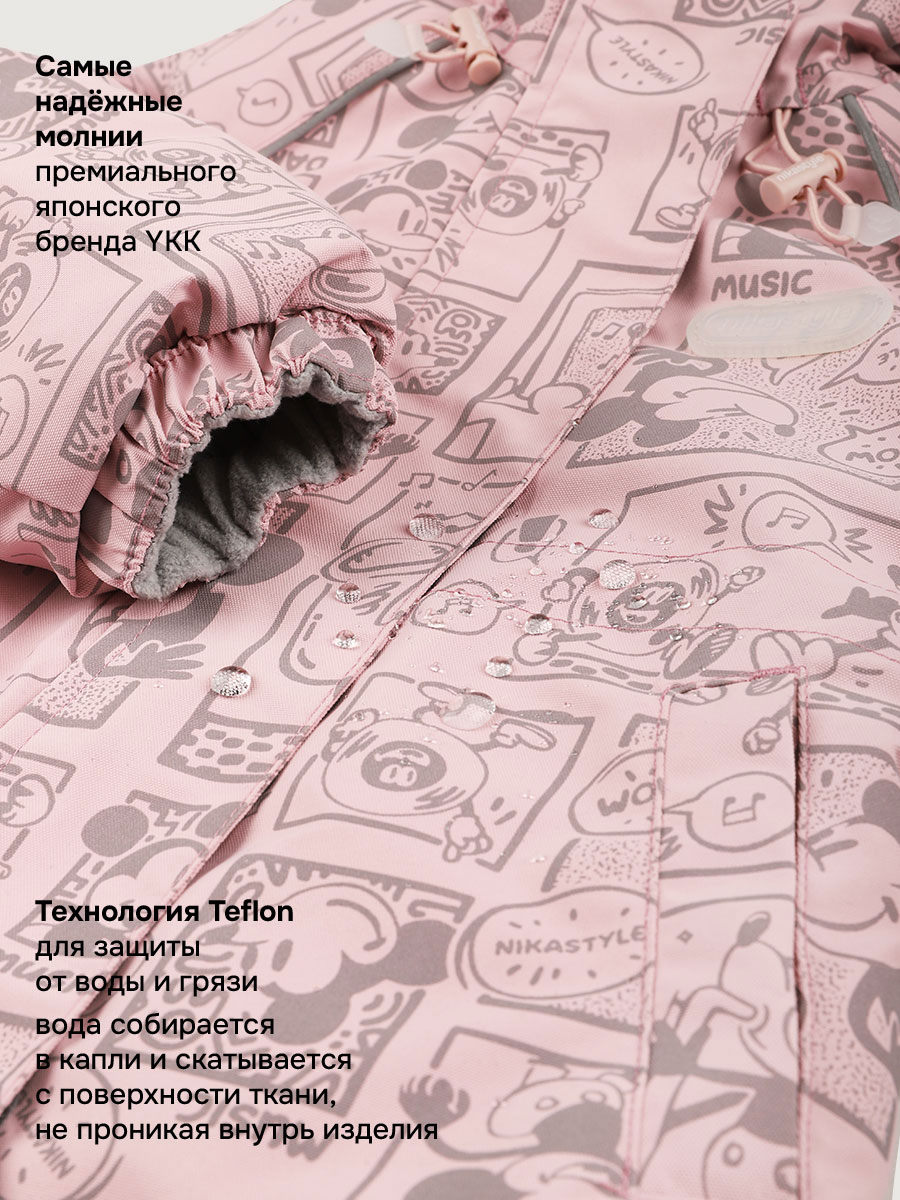 Мембранная ткань - это непродуваемый и водонепроницаемый материал, который надежно защищает от ветра и влаги. Благодаря дышащим свойствам мембраны ребенку будет комфортно в любую погоду и он не вспотеет. Ткань обработана снаружи экологически чистым протектором TEFLON для защиты от воды и грязи.
