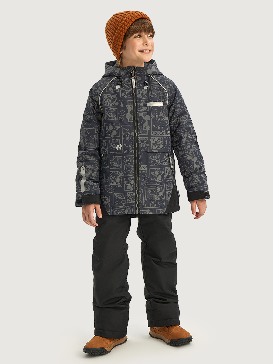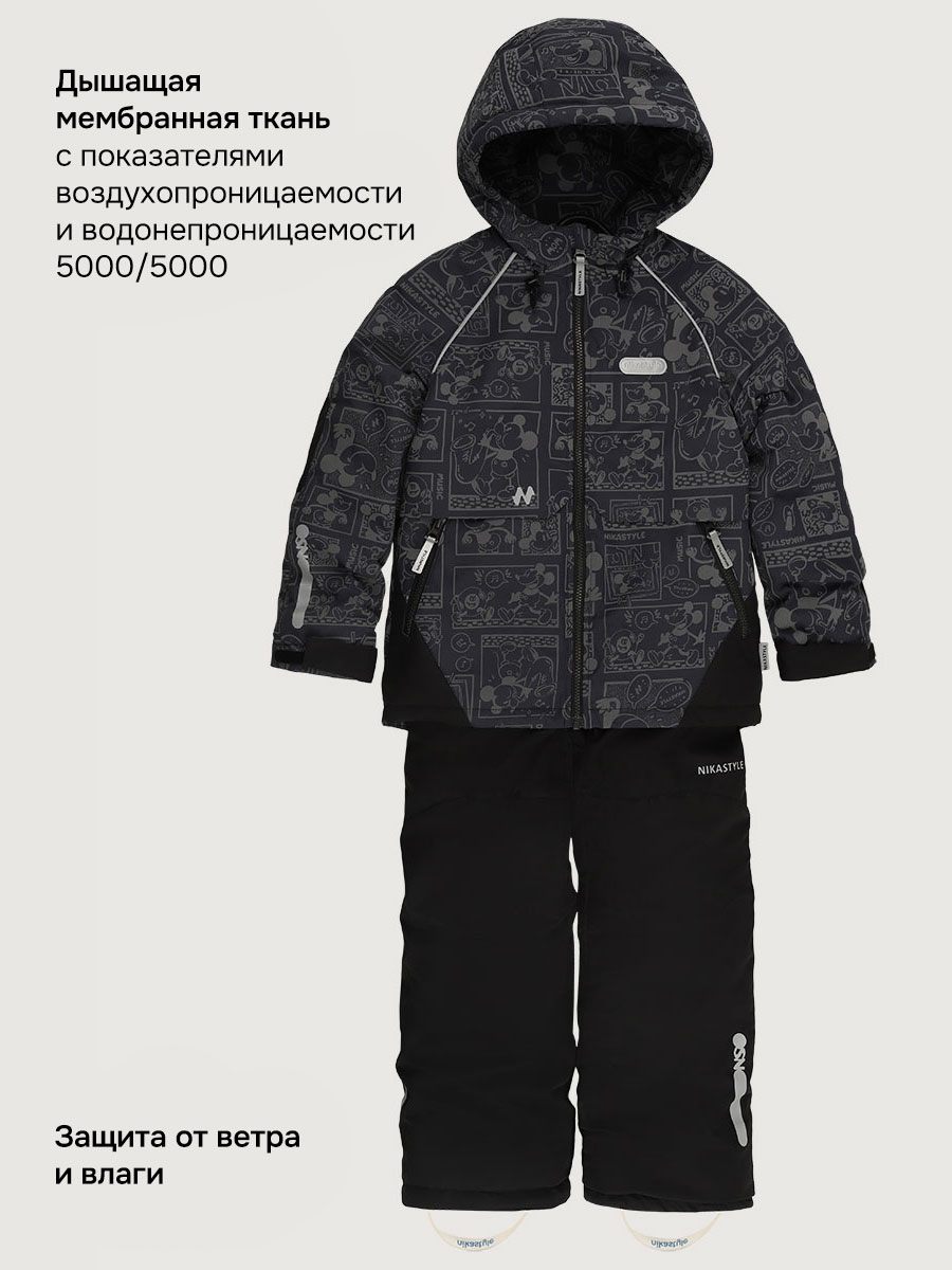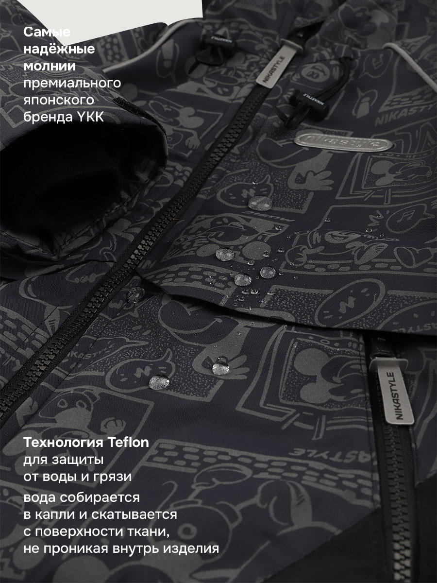 Мембранная ткань - это непродуваемый и водонепроницаемый материал, который надежно защищает от ветра и влаги. Благодаря дышащим свойствам мембраны ребенку будет комфортно в любую погоду и он не вспотеет. Ткань обработана снаружи экологически чистым протектором TEFLON для защиты от воды и грязи.