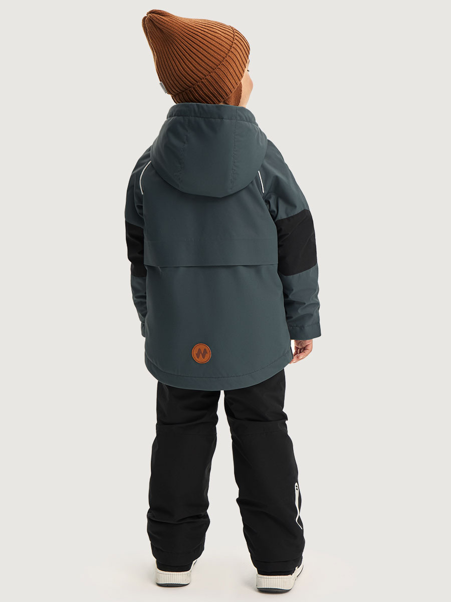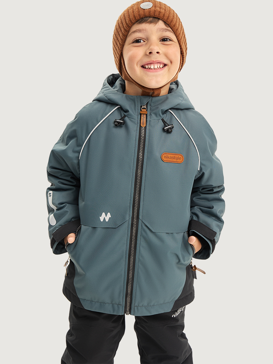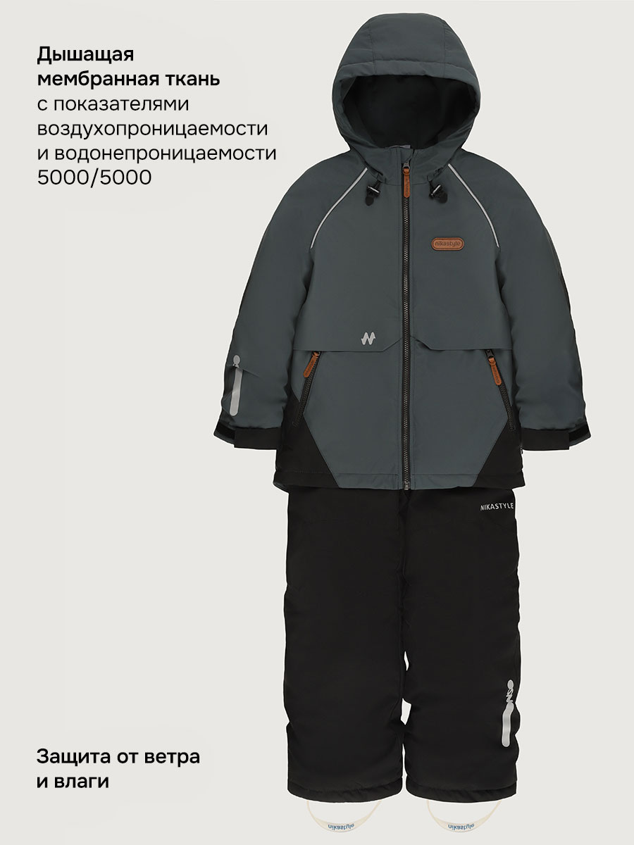 Мембранная ткань - это непродуваемый и водонепроницаемый материал, который надежно защищает от ветра и влаги. Благодаря дышащим свойствам мембраны ребенку будет комфортно в любую погоду и он не вспотеет. Ткань обработана снаружи экологически чистым протектором TEFLON для защиты от воды и грязи.