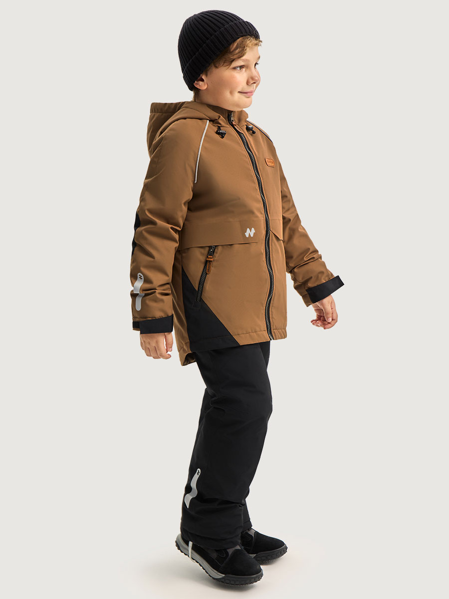 Мембранная ткань - это непродуваемый и водонепроницаемый материал, который надежно защищает от ветра и влаги. Благодаря дышащим свойствам мембраны ребенку будет комфортно в любую погоду и он не вспотеет. Ткань обработана снаружи экологически чистым протектором TEFLON для защиты от воды и грязи.