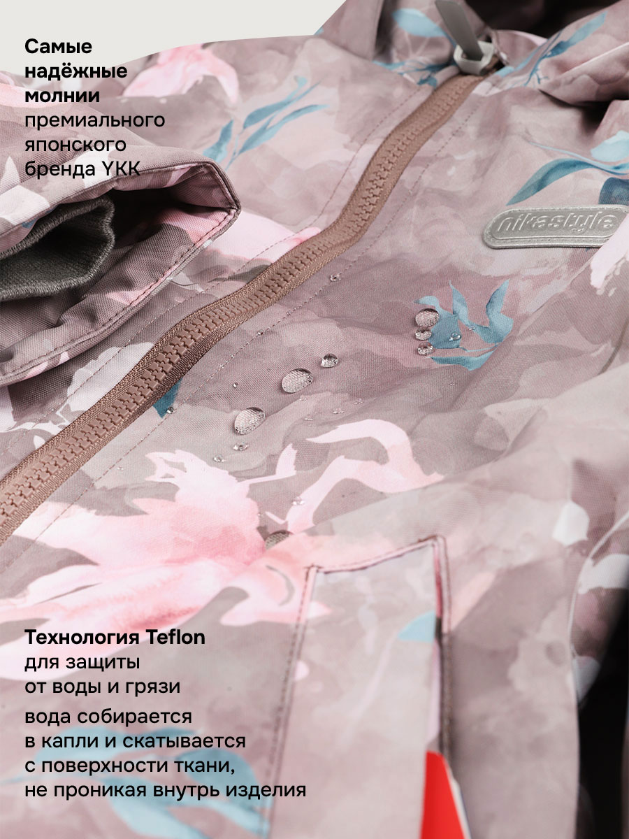 Мембранная ткань - это непродуваемый и водонепроницаемый материал, который надежно защищает от ветра и влаги. Благодаря дышащим свойствам мембраны ребенку будет комфортно в любую погоду и он не вспотеет. Ткань обработана снаружи экологически чистым протектором TEFLON для защиты от воды и грязи.