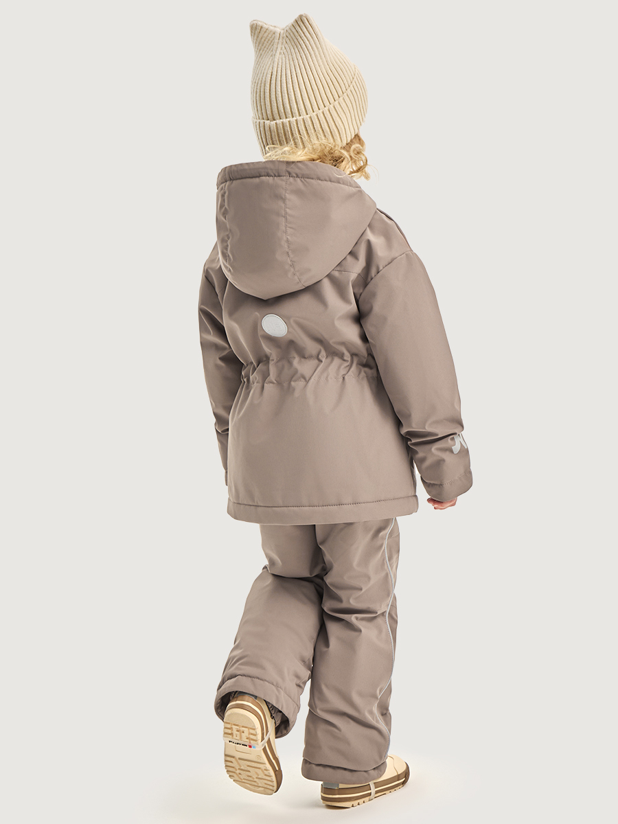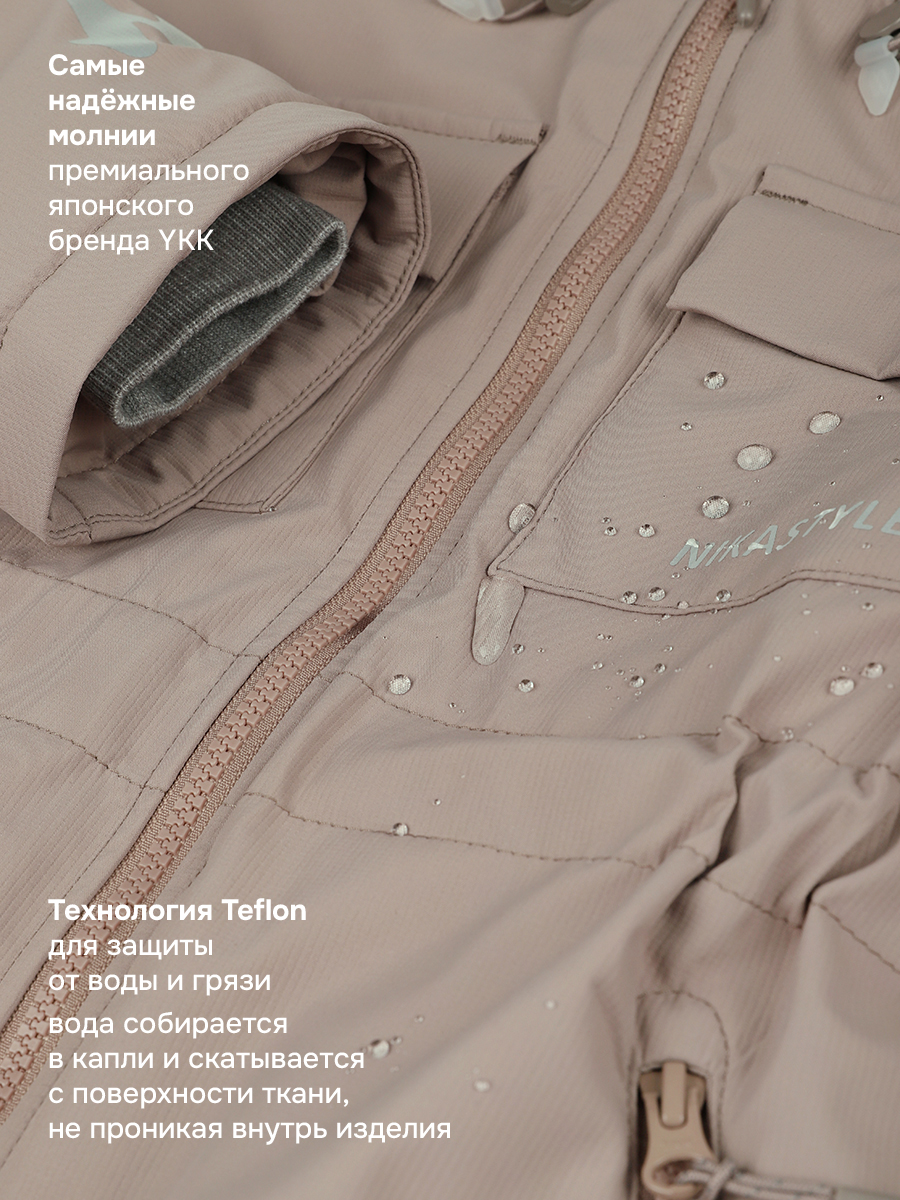 Мембранная ткань - это непродуваемый и водонепроницаемый материал, который надежно защищает от ветра и влаги. Благодаря дышащим свойствам мембраны ребенку будет комфортно в любую погоду и он не вспотеет. Ткань обработана снаружи экологически чистым протектором TEFLON для защиты от воды и грязи.