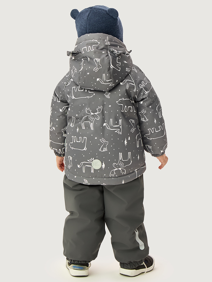 Мембранная ткань это не продуваемый и водонепроницаемый материал, который надежно защищает от ветра и влаги. Благодаря дышащим свойствам мембраны ребенку будет комфортно в любую погоду и он не вспотеет. Ткань обработана снаружи экологически чистым протектором TEFLON для защиты от воды и грязи. Дополнительно на ткань нанесен светоотражающий принт.