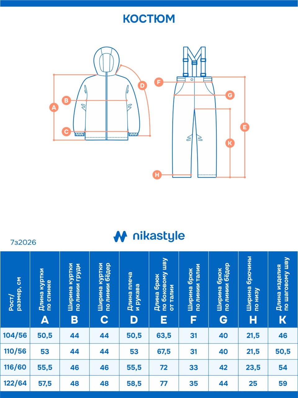 Костюм ПАПОРОТНИК с системой роста на один размер (длина рукавов и брючин увеличивается на 4-5см).