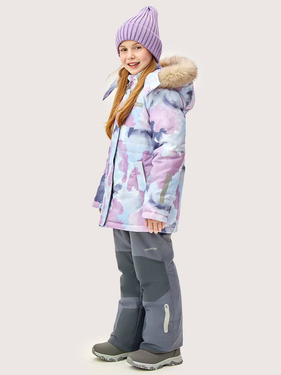 Функционал: центральная застежка и карманы на молнии, внутренний карман на молнии, ветрозащитная планка, съемный капюшон и меховая опушка на молнии, кулиса для регулировки объема по капюшону и в области талии, трикотажные манжеты в рукавах, карман на рукаве под ски-пасс, регулировка ширины низа рукава, внутренние бретели для возможности снять куртку в помещении, снегозащитная юбка. Мы все продумали до мелочей, поэтому брюки дополнительно оснащены регулируемыми бретелями и отстегивающейся спинкой, удобными карманами. Область колен и шов сидения проклеены, места повышенного трения выполнены из особо прочной ткани, снегозащитные муфты, флисовая подкладка до середины бедра, светоотражающие элементы для безопасности ребенка в темное время суток. Комфортная температура эксплуатации от 0°С до -25° С.