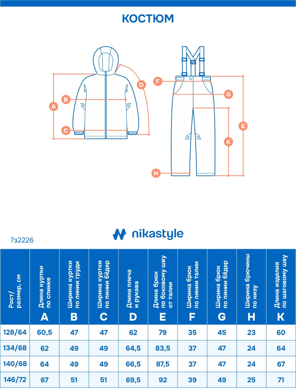 Функционал: центральная застежка и карманы на молнии, внутренний карман на молнии, ветрозащитная планка, съемный капюшон и меховая опушка на молнии, кулиса для регулировки объема по капюшону и в области талии, трикотажные манжеты в рукавах, карман на рукаве под ски-пасс, регулировка ширины низа рукава, внутренние бретели для возможности снять куртку в помещении, снегозащитная юбка. Мы все продумали до мелочей, поэтому брюки дополнительно оснащены регулируемыми бретелями и отстегивающейся спинкой, удобными карманами. Область колен и шов сидения проклеены, места повышенного трения выполнены из особо прочной ткани, снегозащитные муфты, флисовая подкладка до середины бедра, светоотражающие элементы для безопасности ребенка в темное время суток. Комфортная температура эксплуатации от 0°С до -25° С.