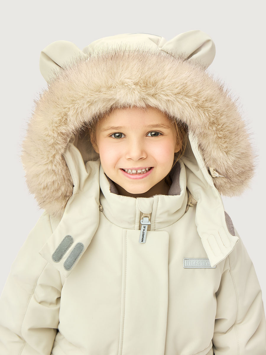 Мембранная ткань это непродуваемый и водонепроницаемый материал, который надежно защищает от ветра и влаги. Благодаря дышащим свойствам мембраны ребенку будет комфортно в любую погоду и он не вспотеет. Ткань обработана снаружи экологически чистым протектором TEFLON для защиты от воды и грязи.