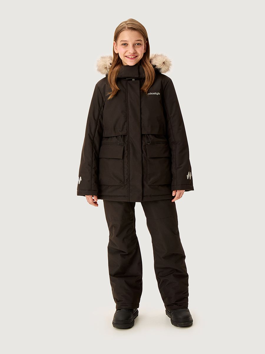 Мы все продумали до мелочей, поэтому брюки дополнительно оснащены регулируемыми бретелями и отстегивающейся спинкой, удобными карманами, снегозащитными муфтами, область колен и шов сидения проклеены, флисовая подкладка до середины бедра, светоотражающие элементы для безопасности ребенка в темное время суток.